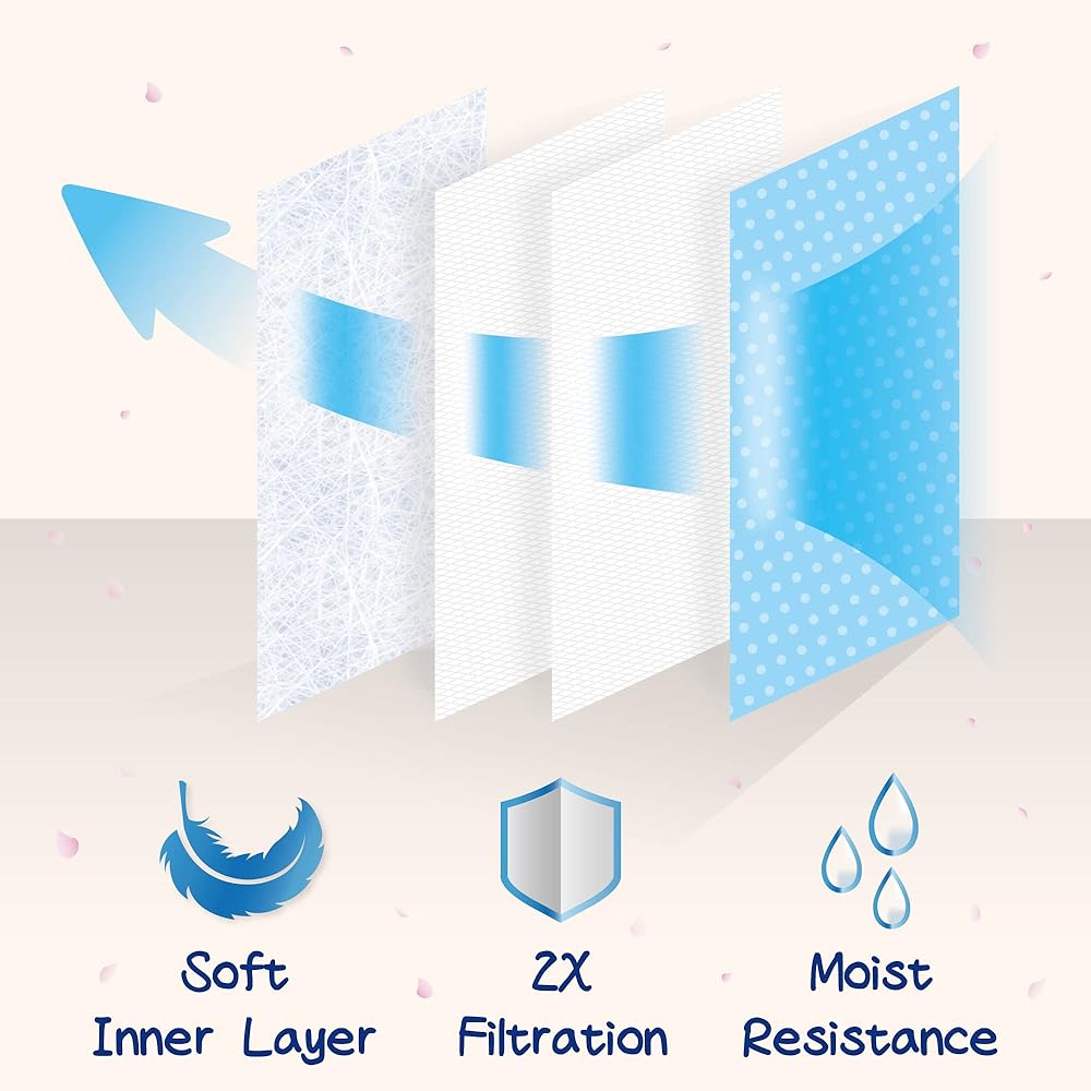 4-Layer Protection Stack up multiple layer to block out all of unwelcome stuff. Also, micro filtration layers use static electricity to catch particles, so you don't fell sophisticating when wearing a 4-ply mask