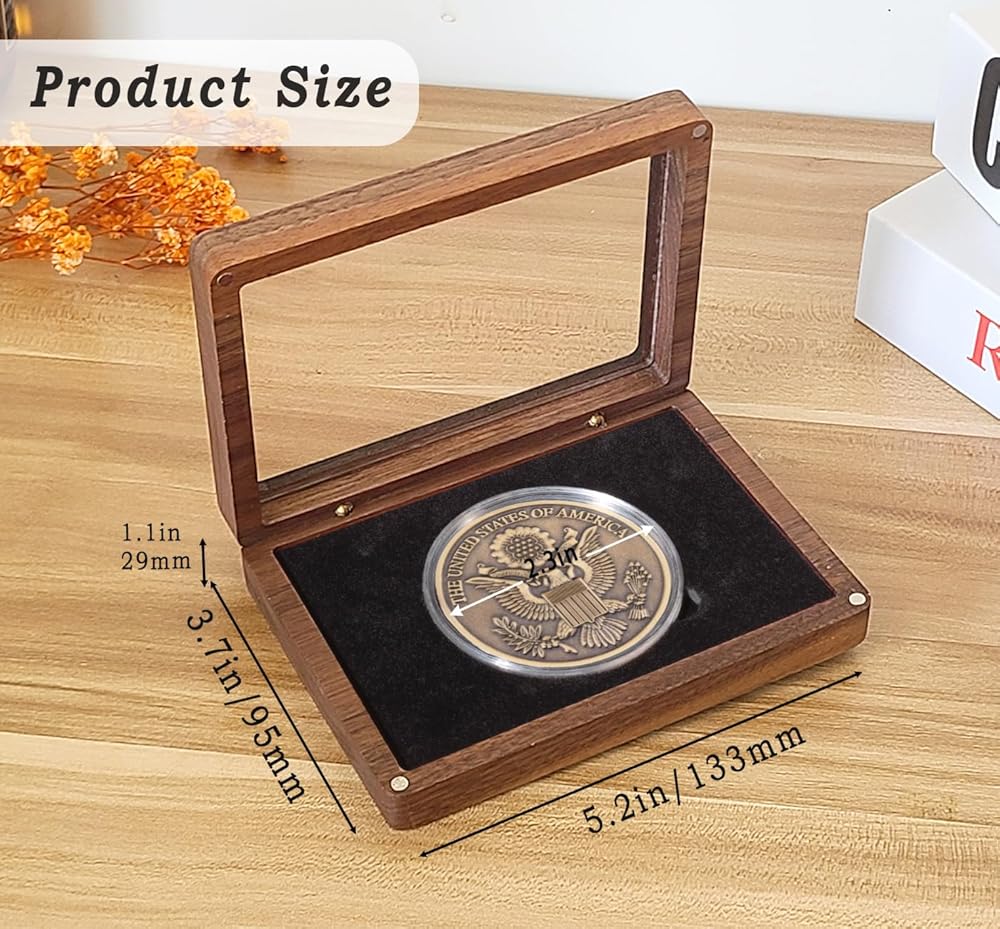 Challenge Coin Display Case Silver Dollar Coin Holder 2.3-2.5" in Single Coin Display Case Wood Coins Storage Box Coin Cases for Collectors