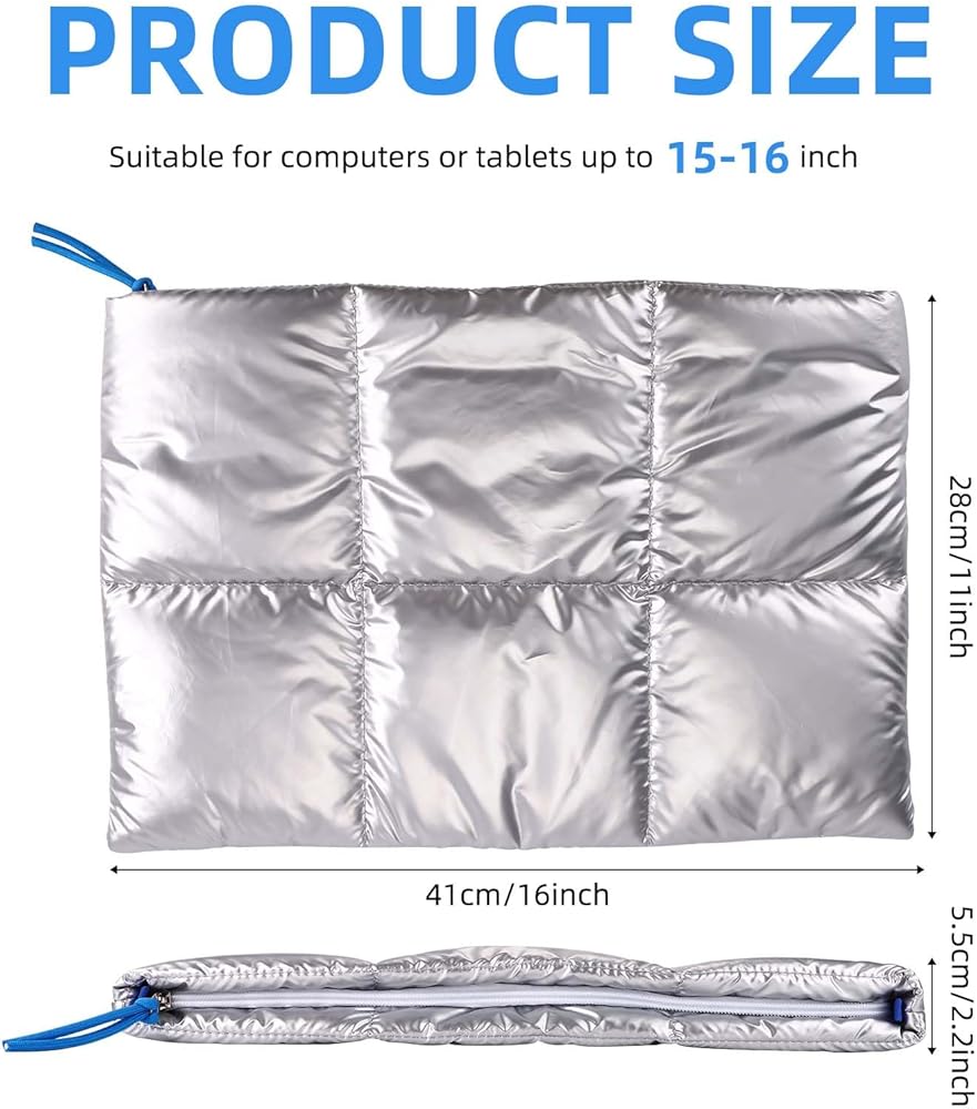 Package Content: You will receive 1 piece of silver thermal laptop case, the size is 41x28x5.5cm/16x11x2.2 inch, lightweight, easy to carry, suitable for computers and tablets up to 15-16 inch.