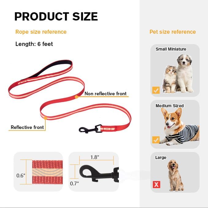 DEAL LENGTH: 6ft length dog leash is a perfect balance between freedom and control. It can give your dog as much freedom but still under your easy control. The 1.5-mm diameter width version fits medium & small dogs.