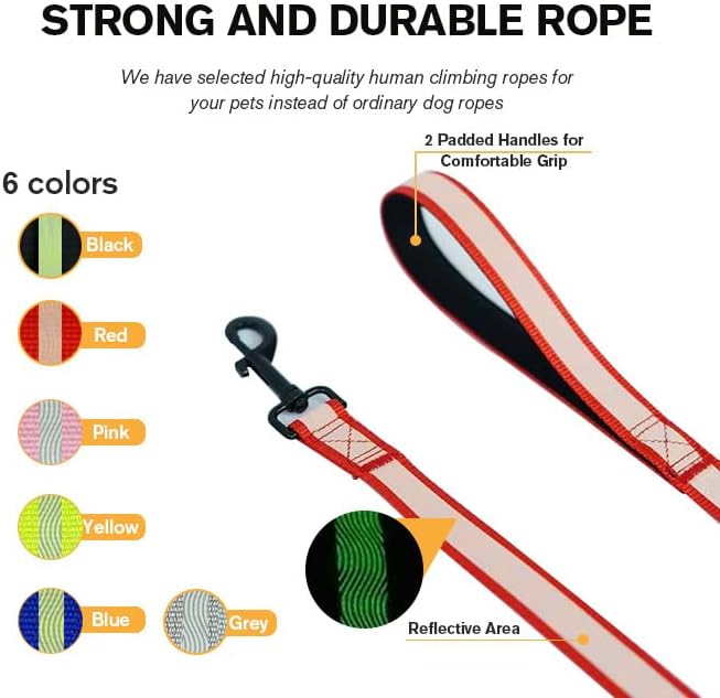 Comfortable to Hold: The handles have a soft cushion padding on the inside grip, which makes it is comfortable to hold and provides much comfort to control your active furry baby, protect your hand from rope burn.