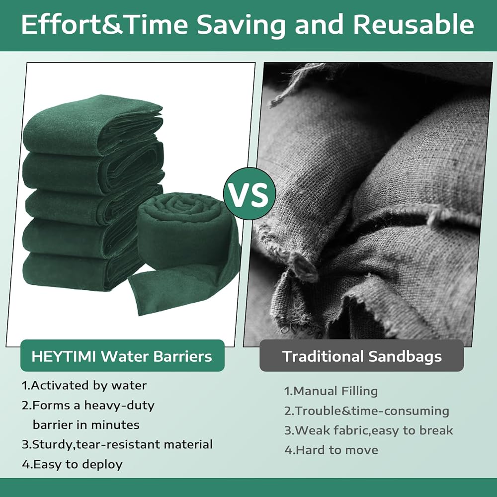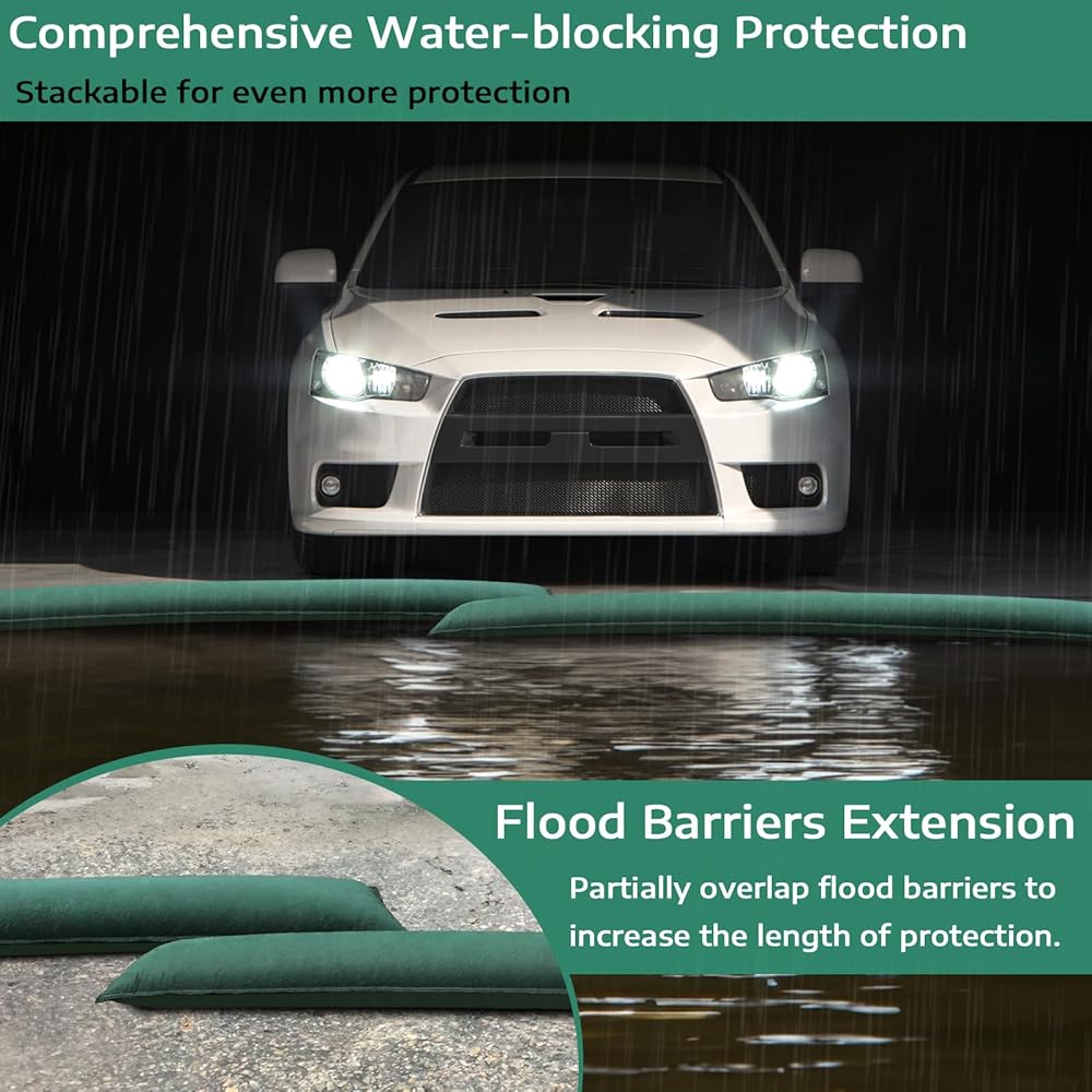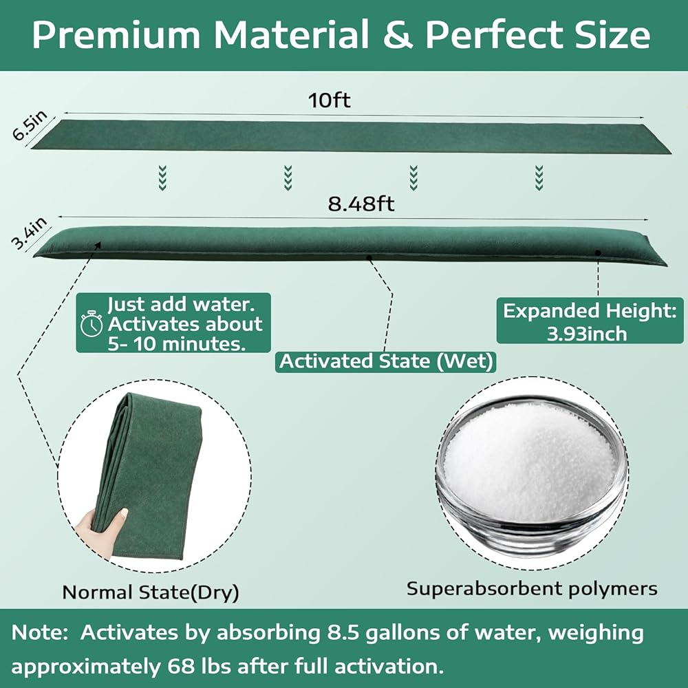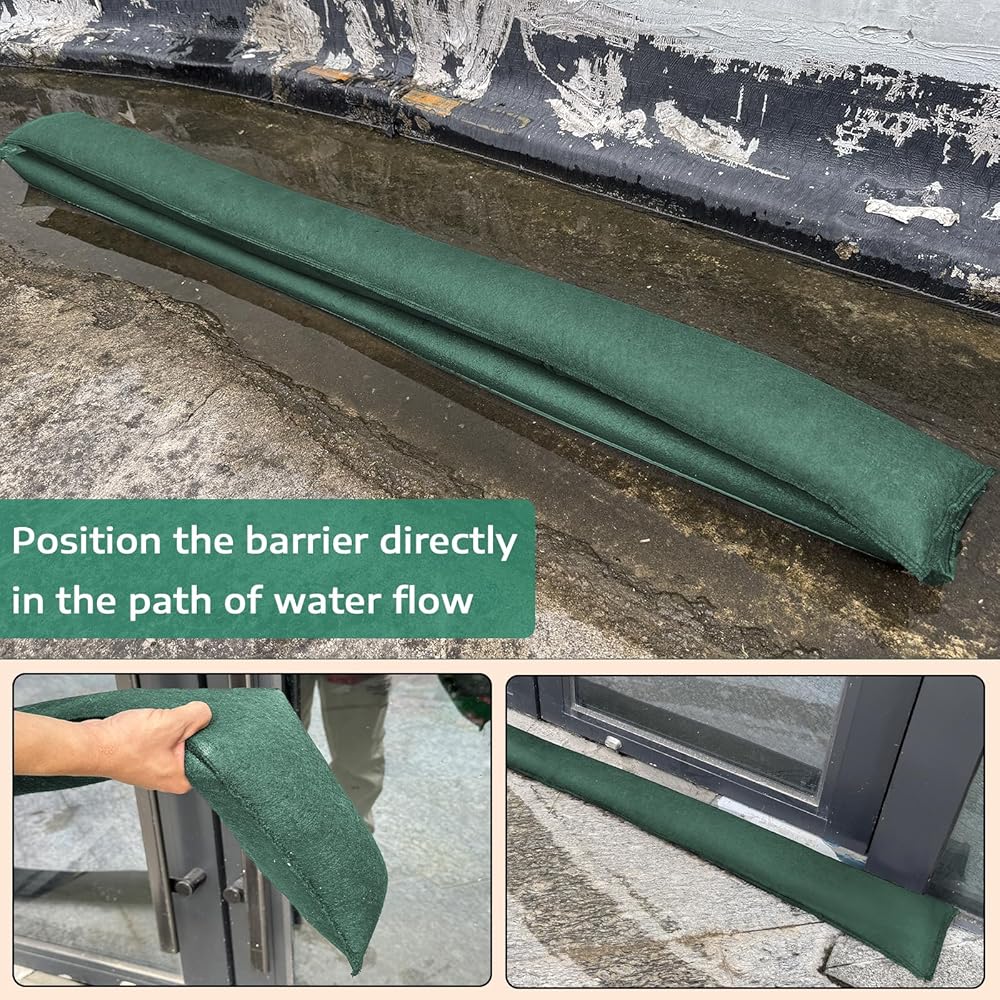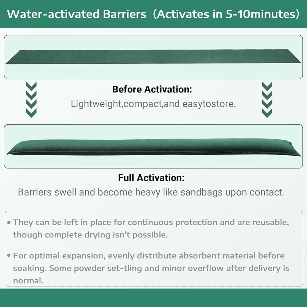 محتوى الحزمة: تتضمن الحزمة 6 قطع من حواجز الفيضان للاستخدام المنزلي ، كل منها حوالي 5 أقدام × 6.5 بوصة قبل الامتصاص. توفر حواجز امتصاص المياه مريحة ، وعزل مائي مريح ، مما يلغي متاعب حمل وملء أكياس الرمل