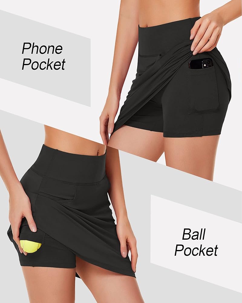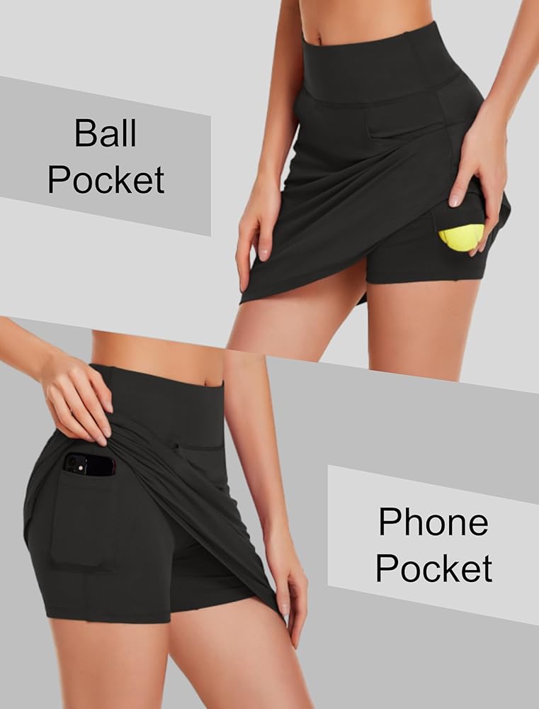 4 Pockets: Women's sports skirts has 2 side pockets in skirts convenient for touring your essentials,2 hidden pocket in inner shorts for your ball and your phone during sports.