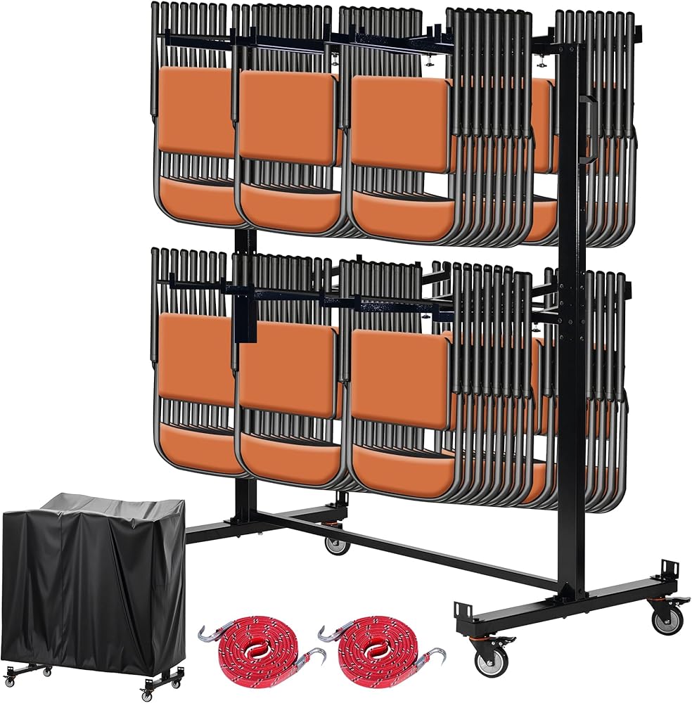 أبعاد المنتج: يبلغ قياس عربة الكرسي القابلة للطي 72.05 "L x 33.86" W × 50 "H ، مما يوفر مساحة تخزين كبيرة. مع سعة تحميل أقصى قدرها 600 رطل ، يمكن أن تستوعب ما يصل إلى 50 كراسي قابلة للطي ، مما يجعله رف كرسي قابل للطي مثالي للتخزين