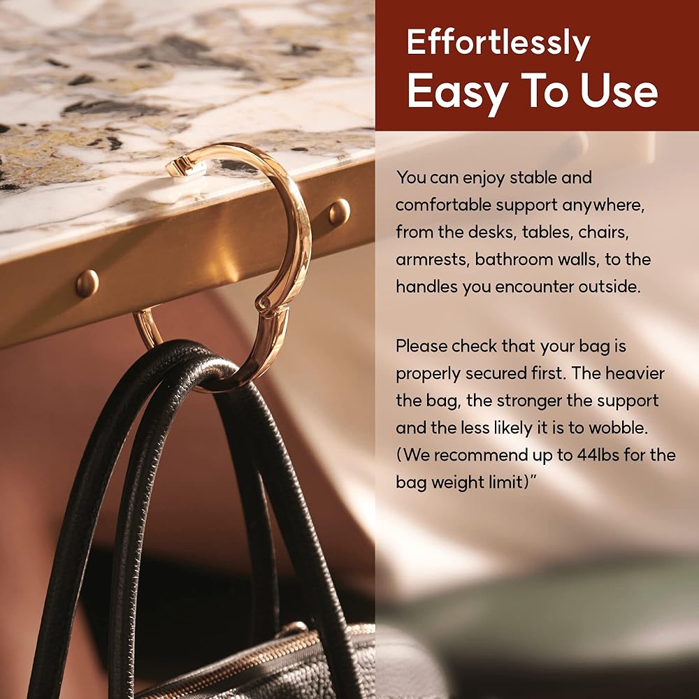 علاقة خطاف محفظة iHELIA للطاولة (حديثة) - حامل حقيبة ممتاز مع سوار مريح بتصميم بيضاوي (ذهبي)