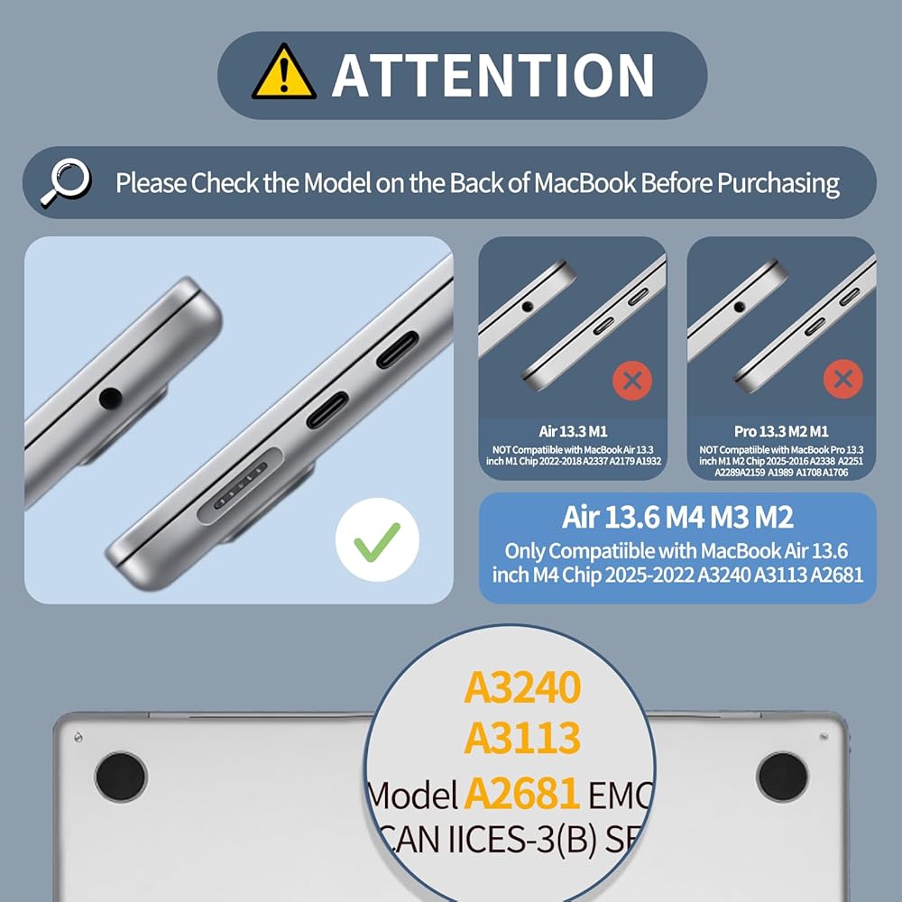 Hard Case Compatible with MacBook Air 13.6 inch Case 2025 2024 2023 2022 M4 A3240 M3 A3113 M2 A2681, Plastic Protective Shell Case Cover & Storage Bag(Grey)