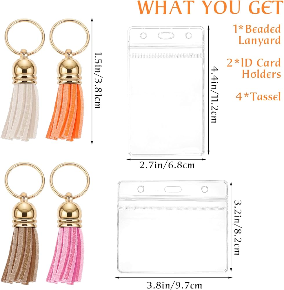 Packing list: 1pcs wooden bead lanyard + 4pcs tassel + 1pcs horizontal card holder + 1pcs vertical card holder
