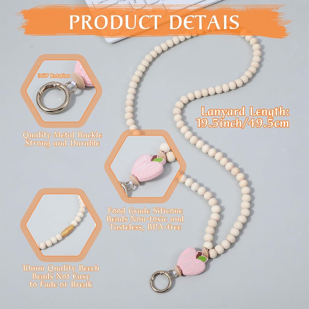 【Quality Materials】: Our teacher lanyard with ID holder is meticulously crafted from a blend of high-quality silicone and wood beads, ensuring both durability and a distinctive aesthetic appeal. The lightweight and strong design of the wooden teacher lanyard ensures comfort for all-day wear, making it an ideal accessory for educators who need to keep their essentials close at hand.