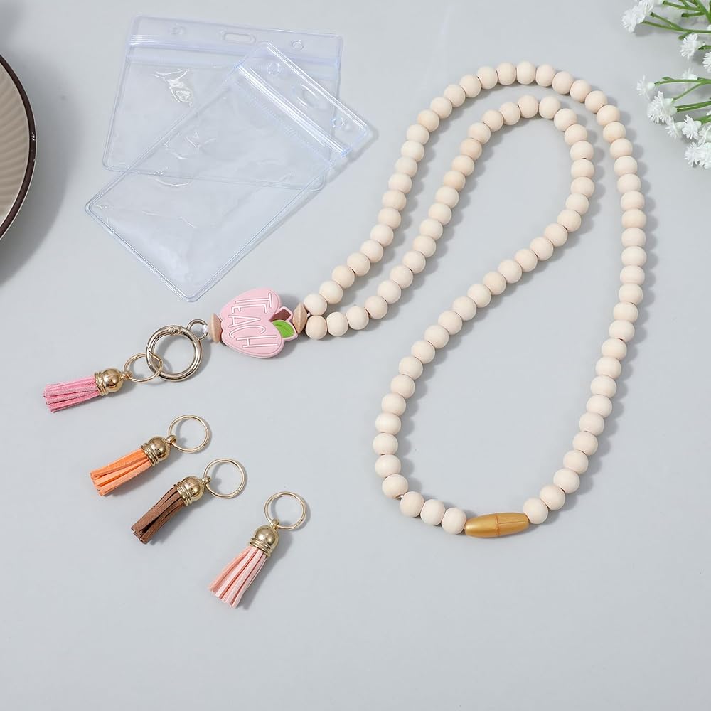【Comprehensive Packaging】: You'll receive 1 wood bead lanyard, 4 interchangeable colorful tassels, and both horizontal and vertical ID holders, all neatly packaged in a convenient bag, making it a practical choice for educators and professionals alike.