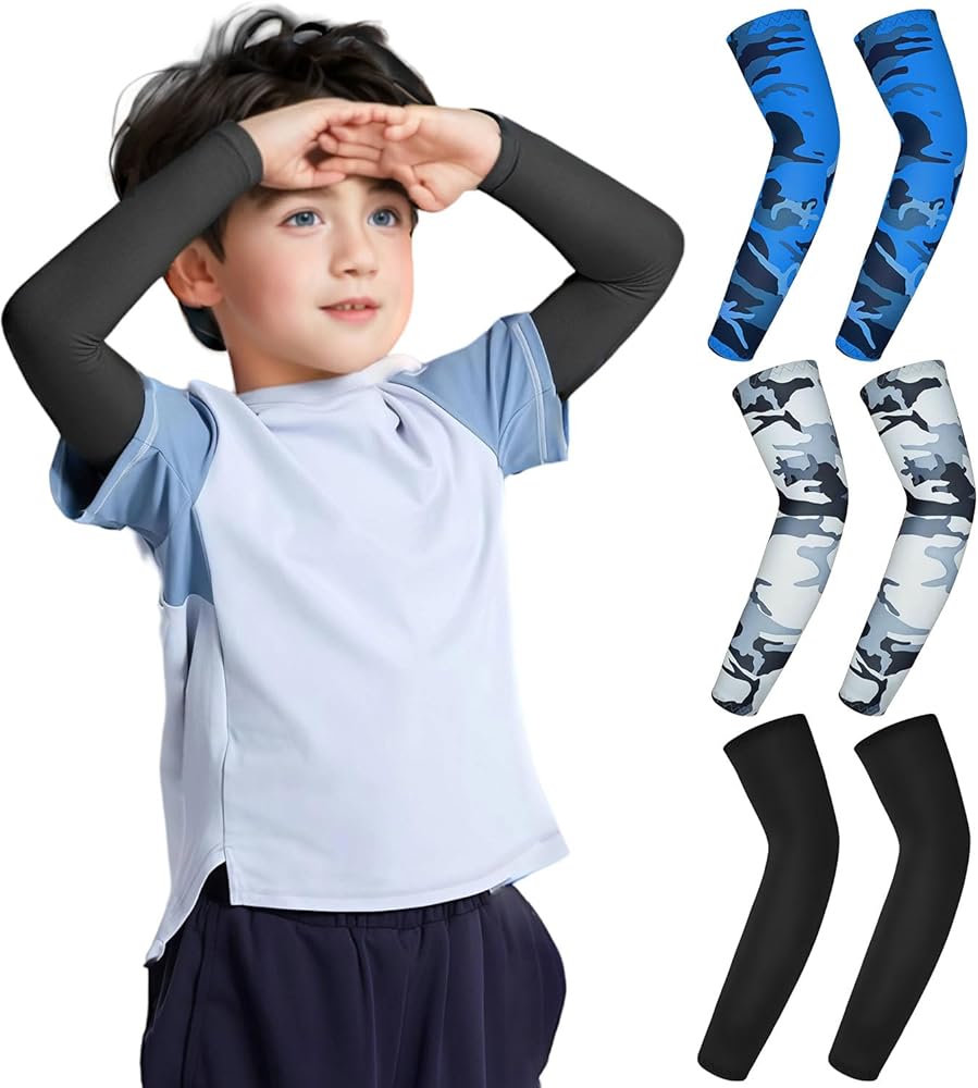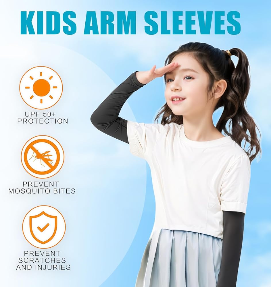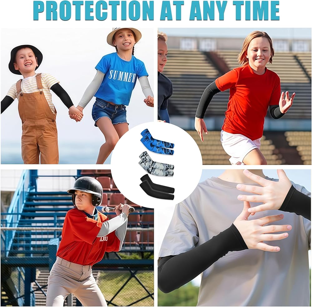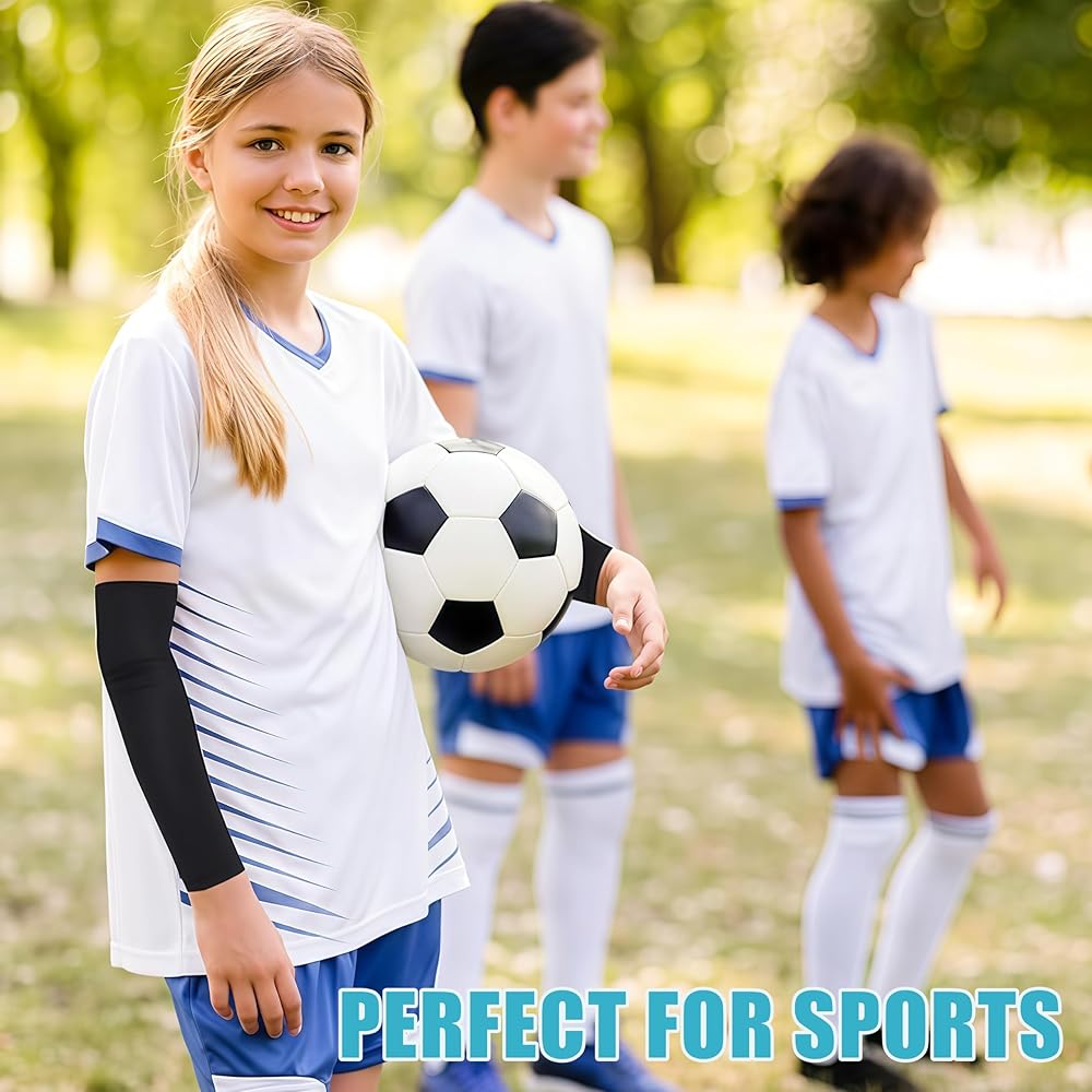 Perfect Size and Fit: The length of the Kids Arm Sleeves is 13 inches (33 cm), extendable to 40 inches, with a wrist circumference of 2.8 inches and extendable to 5 inches, and an upper arm circumference of 4 inches, extendable to 8 inches. They are designed for a comfortable fit for kids (boys and girls) and yourth, promoting muscle recovery and blood circulation during exercise