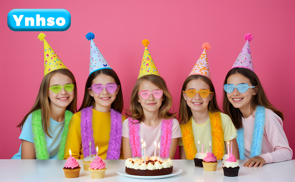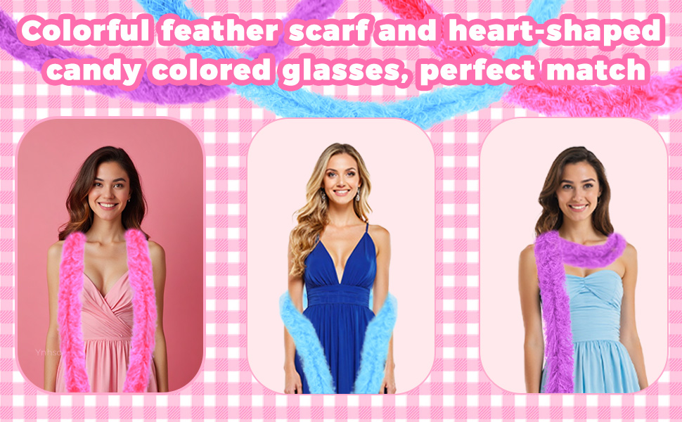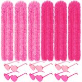 12 PCS Feather Boas Party Pack مع 6 نظارات شمسية من ريشة الاصطناعية الاصطناعية (2M/6.6 قدم) و 6 نظارات شمسية القلب لأعياد الميلاد وحفلات الزفاف وحفلات الشاي وحفلات الأزياء وماردي غرا والهالوين وعيد الميلاد