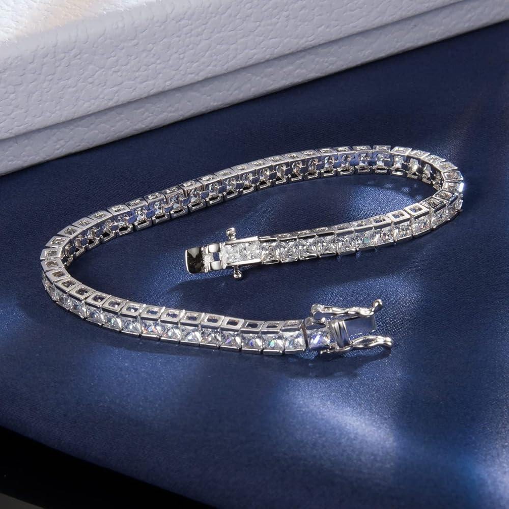✦خامة فاخرة✦: سوار التنس مصنوع من الفضة 925 و3.0x3.0 مم AAA + زركونيا مكعب الأميرة. تصميم معدني ثنائي يمكن أن يحافظ على بقاء الزركون أكثر استقرارًا على السوار، مما يقلل من خطر سقوط الماس. سوار مذهل سيجعلك تبدو أكثر إشراقا.