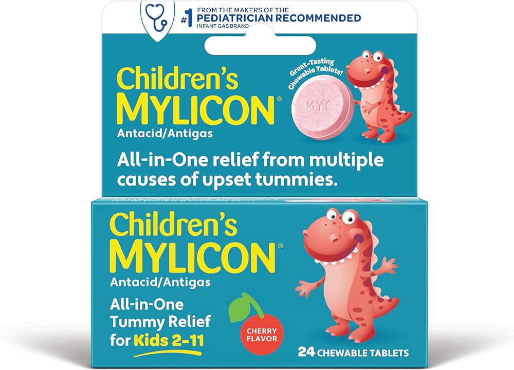For generations, moms have trusted Mylicon for relieving their babies' gas discomfort. Now there's help for bigger kids too: NEW Children's Mylicon Tummy Relief for Kids; the only multi-symptom, chewable tablet for kids 2 - 11 that is designed to quickly soothe upset tummies due to bloating and discomfort from gas, acid indigestion, and overeating. From the maker of the #1 Pediatrician Recommended brand for infant gas relief, Children's Mylicon effectively relieves tummy discomfort from gas and acid while being safe and gentle for little bodies.