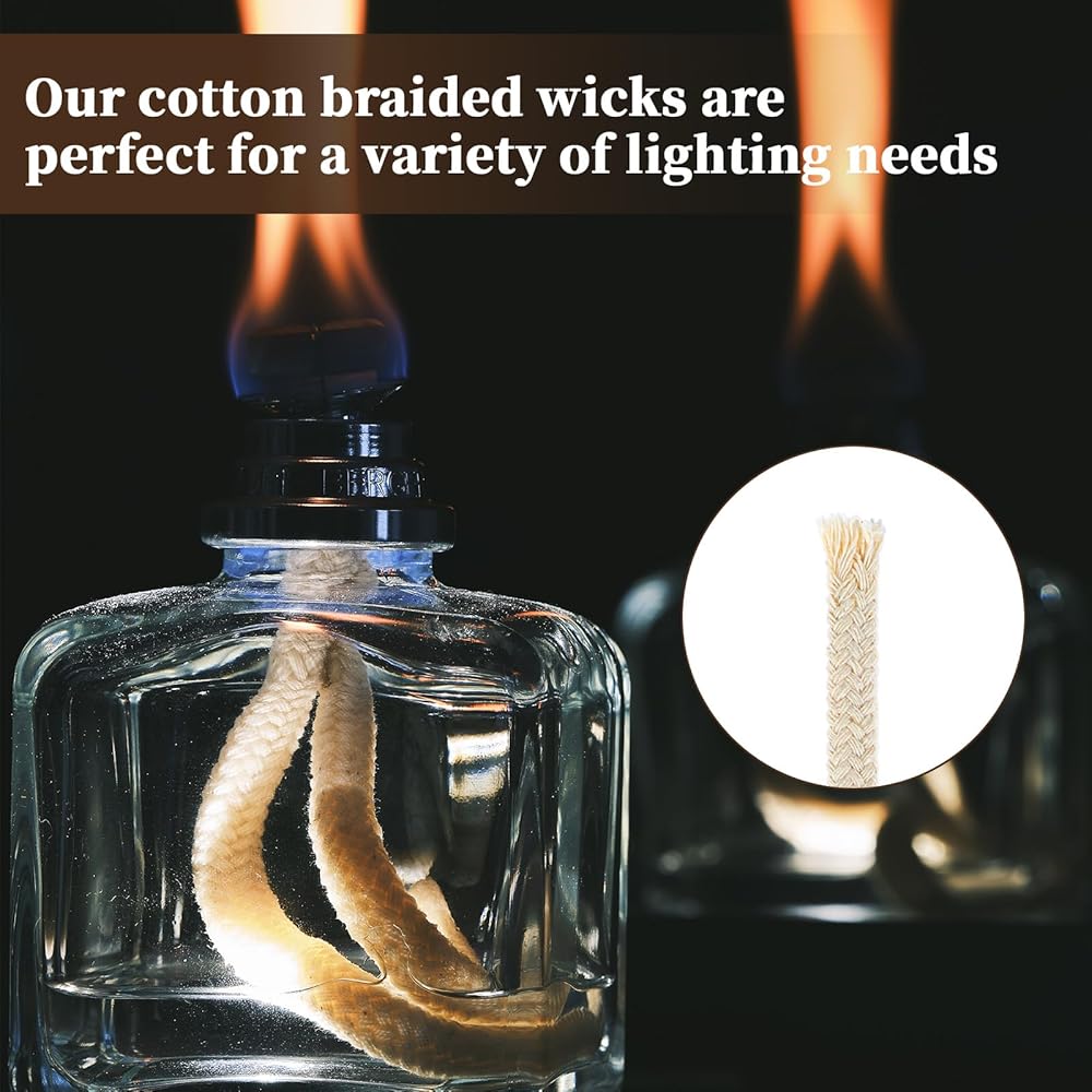 【Practical】Our wicks are designed for versatility, suitable for tiki torches, oil lamps, and candle making. Enjoy a gentle glow with our cotton wicks, which respect the air around you and provide a smokeless burn.