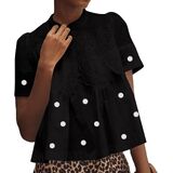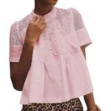 الدانتيل للسيدات مشهورت بلوزة قصيرة الأكمام الدانتيل بوبلين كشكش الشك