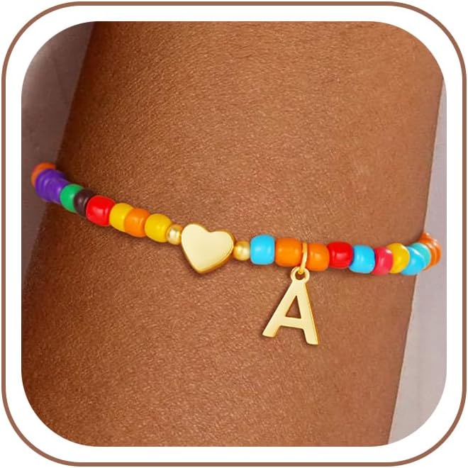 التصميم: هذا السوار الأولي المذهل الملون الجميل مع قلادة القلب والأحرف الأولية ، مثالية لإضافة لمسة مرحة لمظهرك ، إنها طريقة رائعة لعرض شخصيتك.