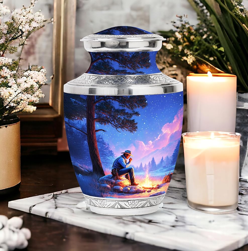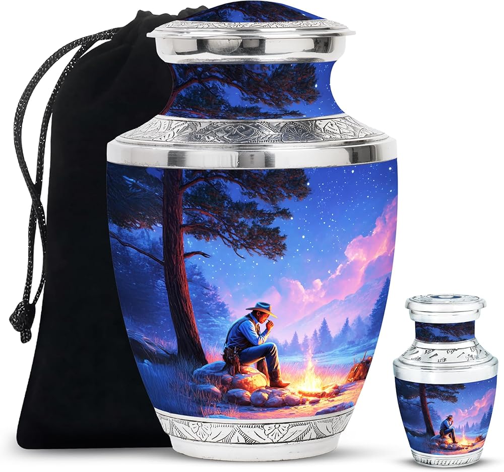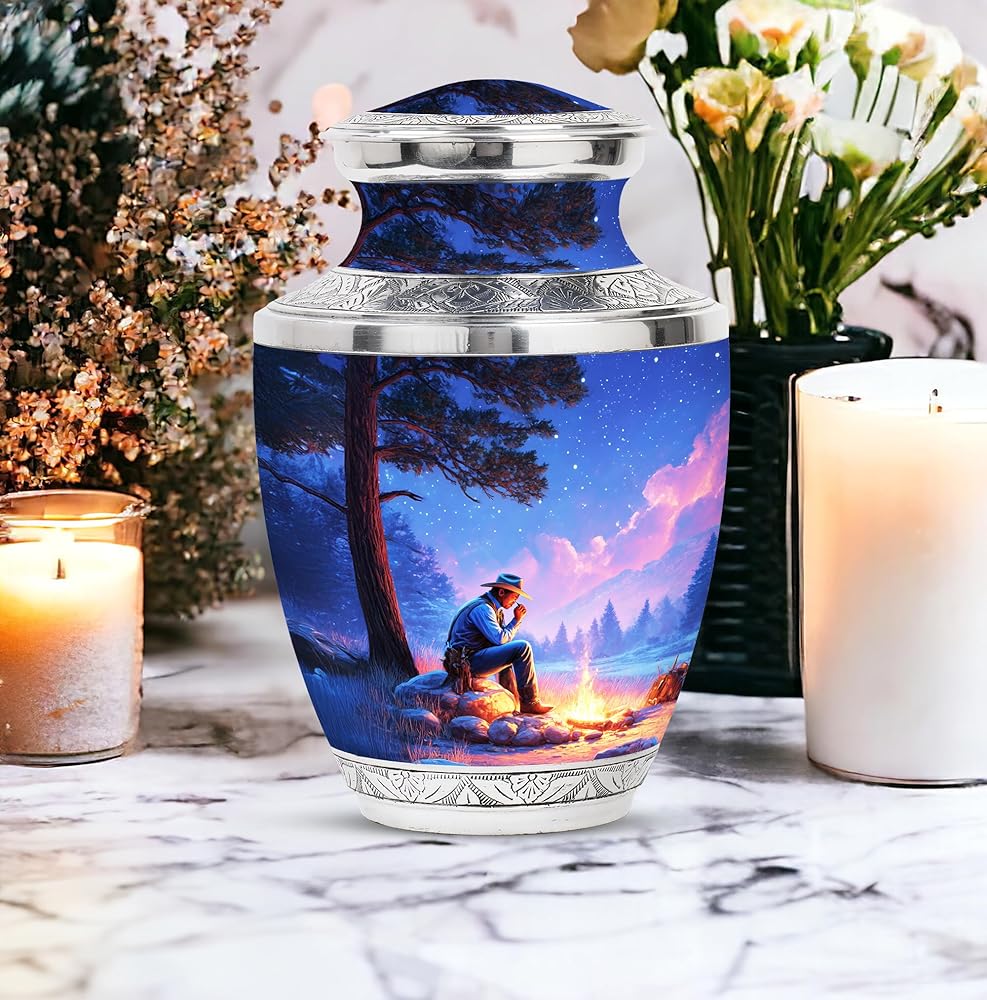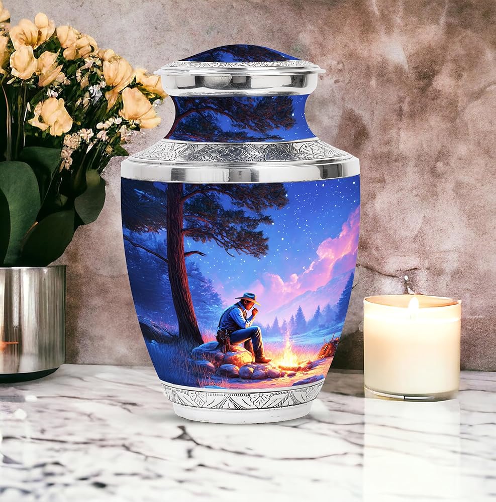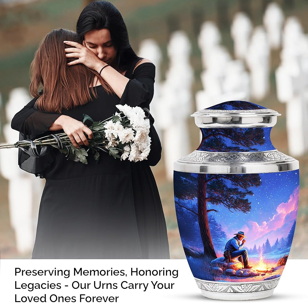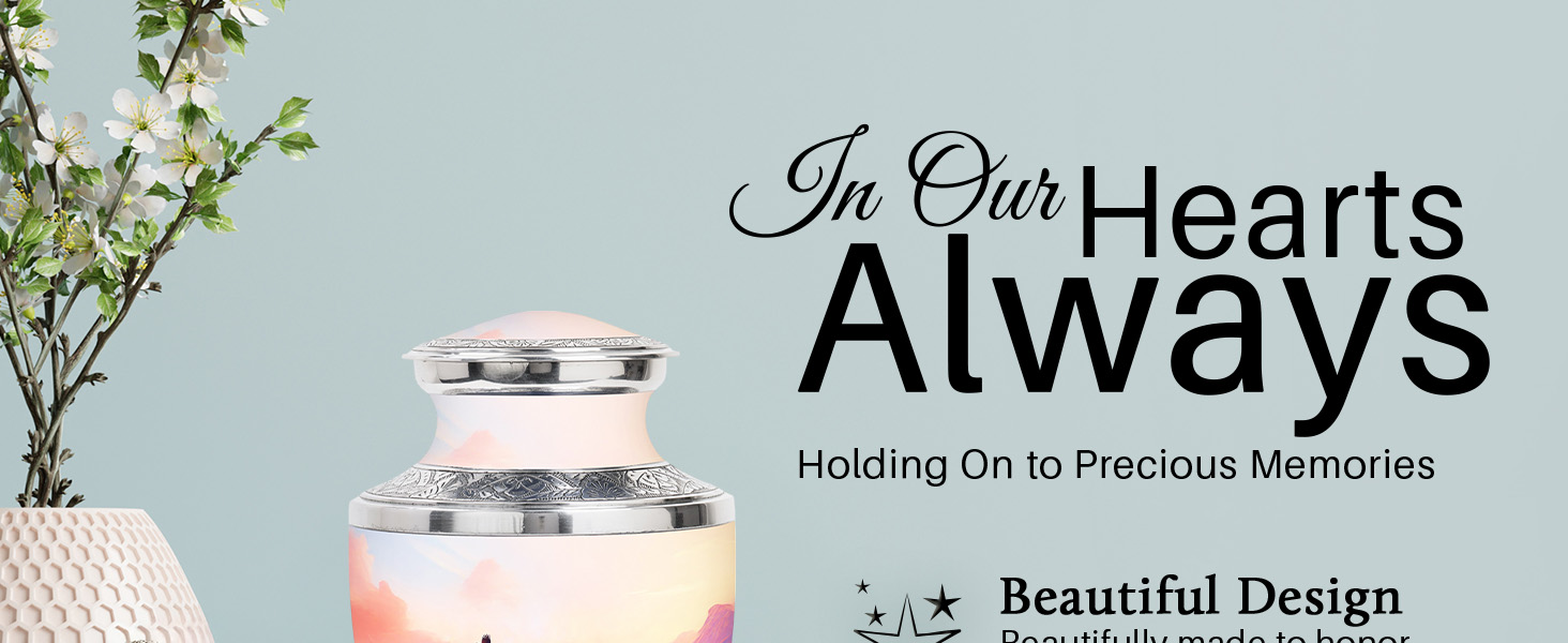 جرة لرماد الذكور البالغين - جرة تذكارية مع تصميم ذي مغزى يرمز إلى الحب والذكرى ، هذا جرة الحرق للرماد البشري يجلب الراحة والكرامة. خيار مثالي للبقايا البشرية.