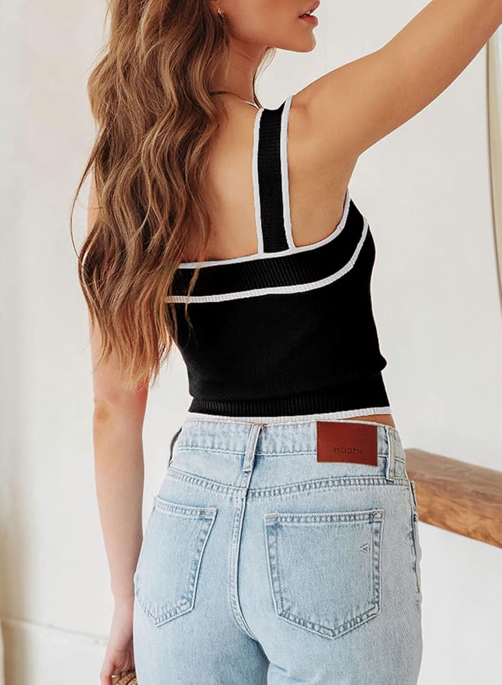 التصميم والنسيج: قمصان قصيرة بدون أكمام للنساء مصممة برقبة مربعة، تصميم مرقع خفيف، باستخدام نسيج محبوك، مسامي، ناعم ومريح؛ ستكون قمصان y2k النسائية رائعة جدًا للارتداء بمفردها أو كقطعة طبقات.