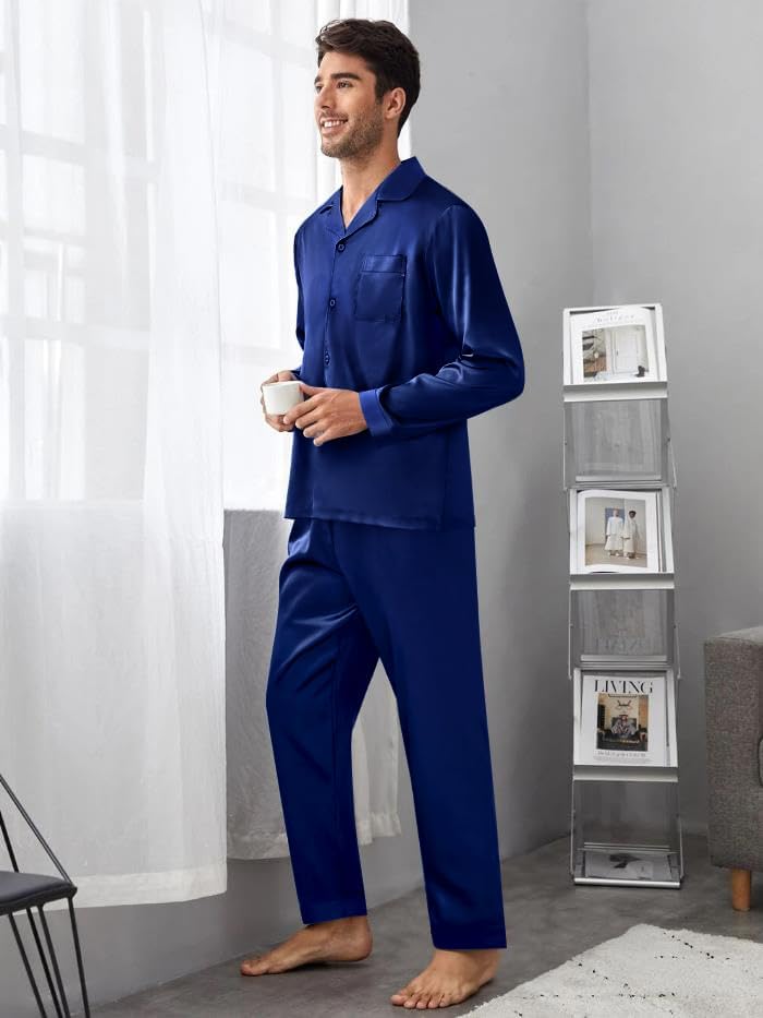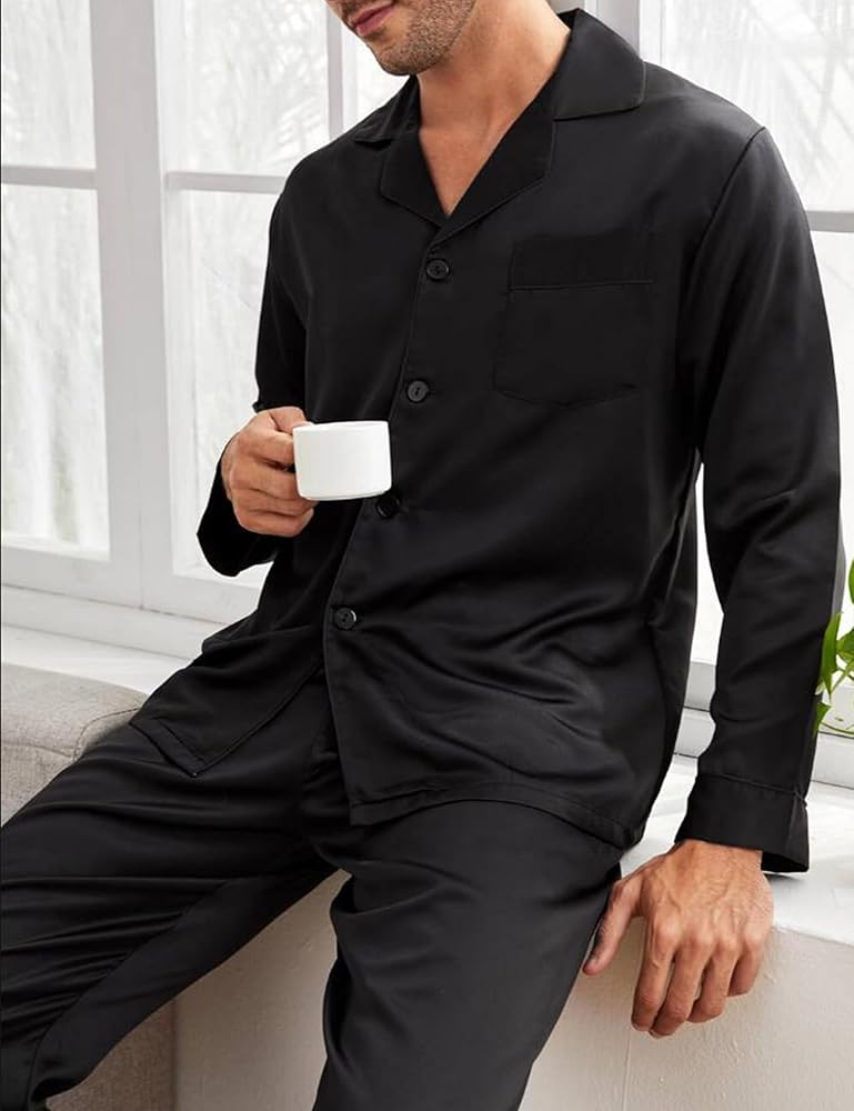 ♨️خفيفة الوزن ومريحة - مجموعة البيجامة خفيفة الوزن هذه مصنوعة من ساتان البوليستر الفاخر لتبقيك مغطى دون إرهاقك. استمتع براحة الساتان طوال العام. نصائح: تباع كل مجموعة من البيجامات المطابقة بشكل منفصل، ابحث عن "الرجال" و"النساء".