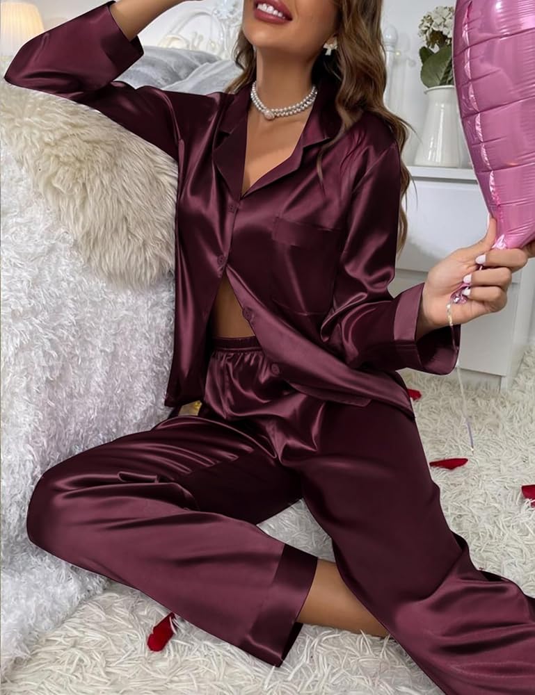 🏘️المناسبة - ملابس النوم هذه مناسبة للنوم وحفلات البيجامة ويوم الفتيات وفي الداخل وغرفة المعيشة وغرفة النوم وما إلى ذلك. مجموعة البيجامة المريحة هي طريقة مدروسة لإخبارها "أنت تستحق الاسترخاء". هذه المجموعة من الساتان مناسبة لحفلات النوم، أو النوم، أو حفلات البيجامة، أو عيد الفتيات، أو عيد الأم، أو الكريسماس، أو ببساطة كهدية رائعة "بدون سبب".