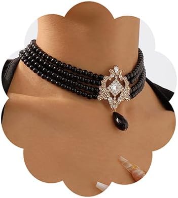 fxmimior النساء الزفاف خمر 1920s الطبقات الشرابة السوداء اللؤلؤ لامعة المختنق قلادة أزياء الشرير هالوين القلائد البسيطة للنساء والفتيات (أسود)