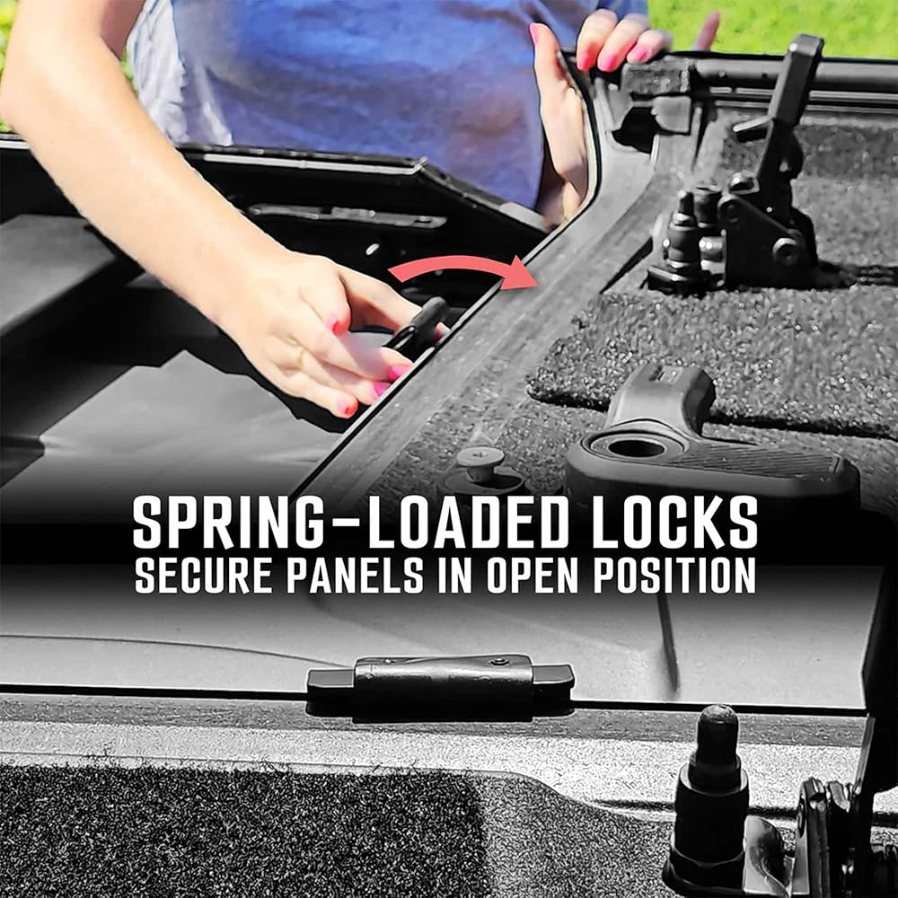 Quick and Secure Operation: Unlock and open your Freedom Panels in seconds then lock them in place securely to your roof. No noise, no bumping or rattling.