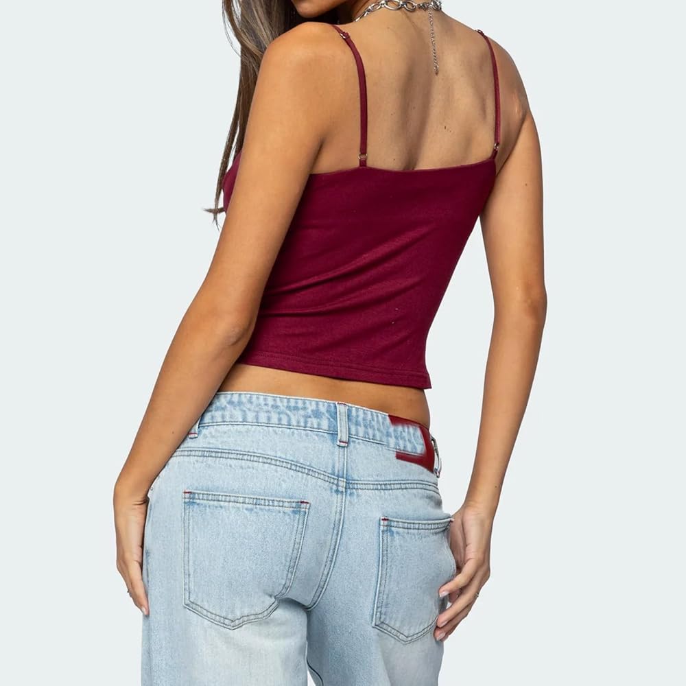 Stylish Y2K Design - This chic cowl neck tank top features a trendy layered bra design with delicate spaghetti straps, perfect for a sexy, retro Y2K look. The slim fit and cutout details add a modern, flattering touch