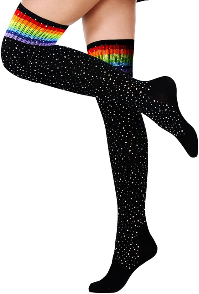 【هدايا مثالية】 نحن نقدم الكثير من الألوان لتختار منها. كل من يرتدي جوارب طويلة فوق الركبة سيصبح ألمع نجم في الحشد. إنها الخيار الأمثل لأحبائك كهدية للعطلات، مثل يوم الجورب المجنون، وعيد الحب، وعيد الأم والذكرى السنوية.