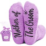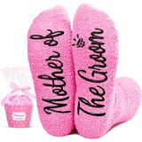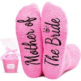 BRIDE SOCKS: These dark pink socks feature the funny saying "THE BRIDE" for a stylish touch on your special day.