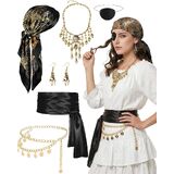 High-Quality Materials: Crafted with satin, our pirate headband and waist scarf provide comfort and style, while the antique gold-toned jewelry, including the necklace and earrings, adds a touch of authenticity to your pirate costume.