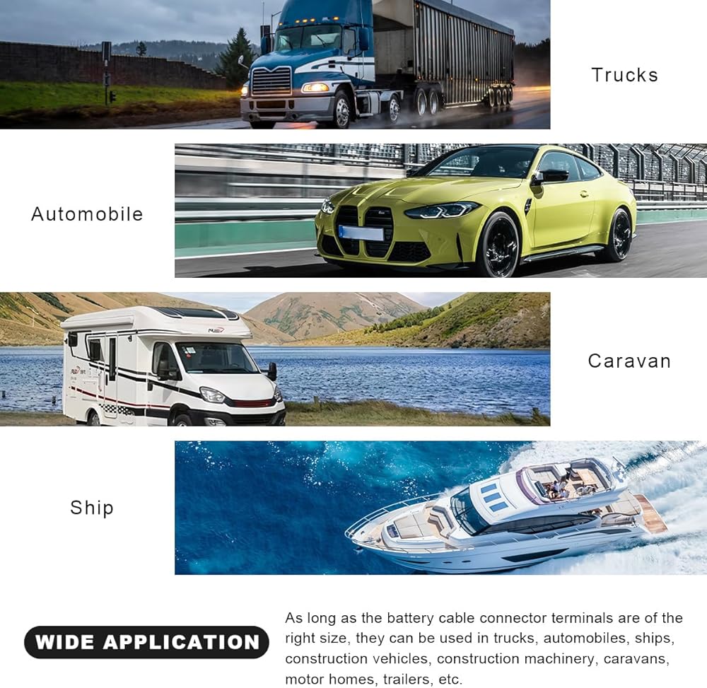 【Widely Applicable】: Measuring 1.46×1.97 inches, this Connector has an adjustable inner diameter of 0.63 to 0.71 inches, which can be adjusted to fit your battery terminals by tightening the bolt. It fits many sizes of battery terminals for cars, boats, small yachts and RVs.