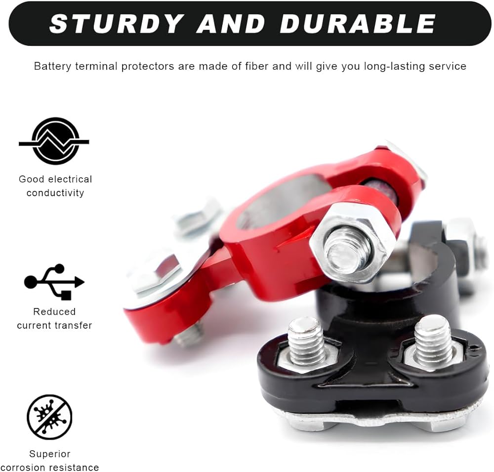 【Excellent Conductivity】: This battery terminal connector is a battery replacement accessory with good electrical conductivity, which minimizes resistance and improves the efficiency of current transfer, ensuring the battery provides a stable power supply to the car.