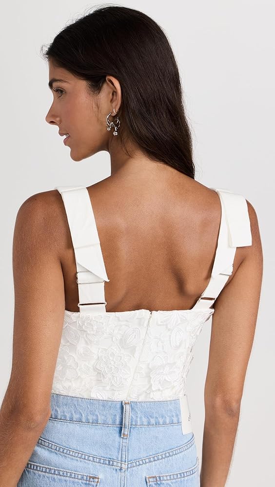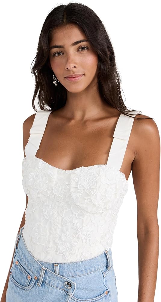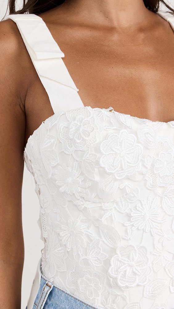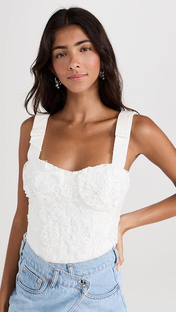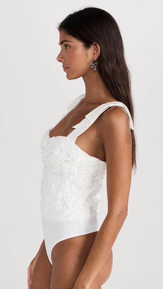 - بدلة للجسم على طراز الكورسيه، مزين بالدانتيل الزهري ثلاثي الأبعاد، أكواب داخلية مع أشرطة جانبية، أشرطة فيونكة قابلة للتعديل