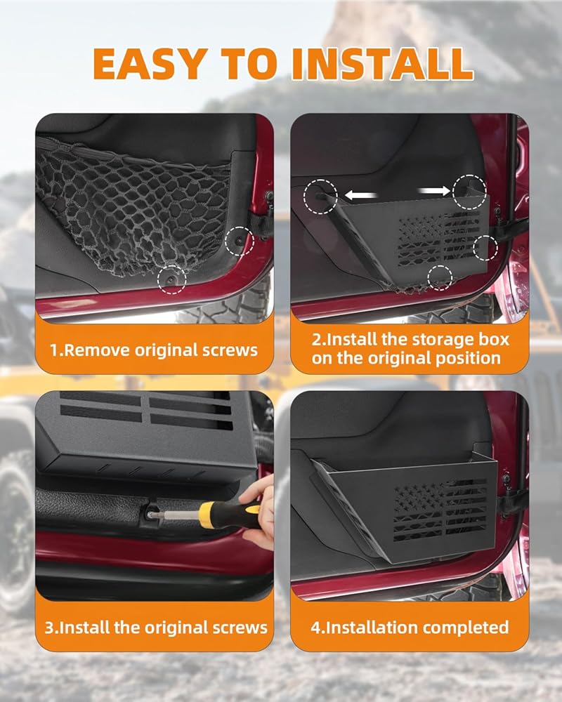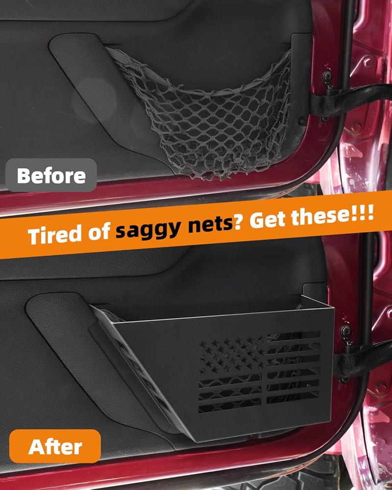 for Jeep Pocket Storage Wrangler JK JKU 2007-2018 2/4 Door, Metal Front Door Storage Pocket Box Organizer Insert Compatible with Jeep Wrangler JK Accessories Replacement
