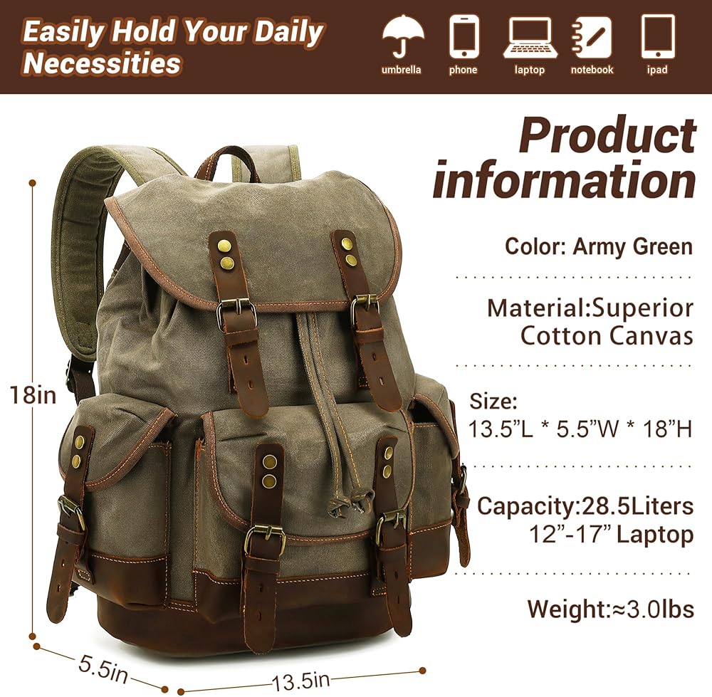 رفيق المغامرة يمكن الاعتماد عليه: تم إنشاؤه من قماش مشمع مقاوم للماء وجلد الخيول المجنونة ، تم تصميم حقيبة الظهر هذه لتستمر ، وتواجه المطر الثابت والتضاريس الوعرة. يضمن خياطة المعزز والأجهزة المقاومة للزنك المقاومة للصدأ أنها غير قابلة للكسر في كل رحلة.