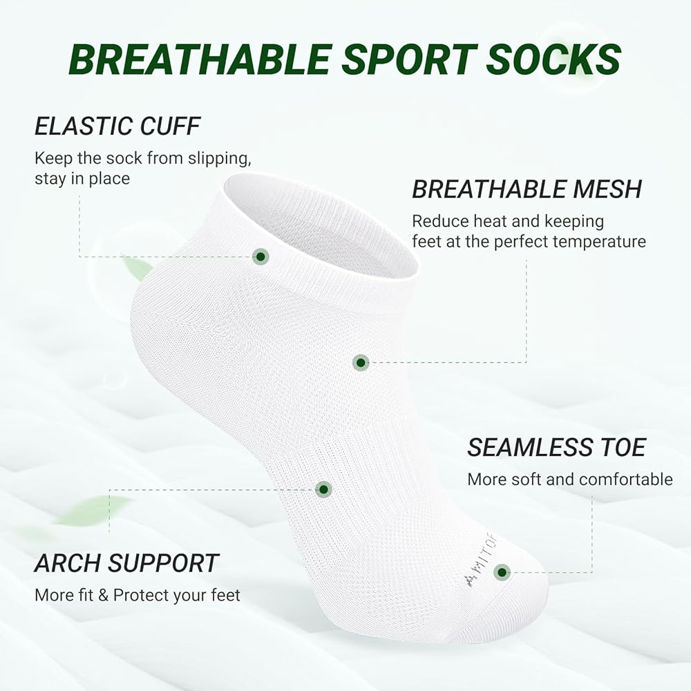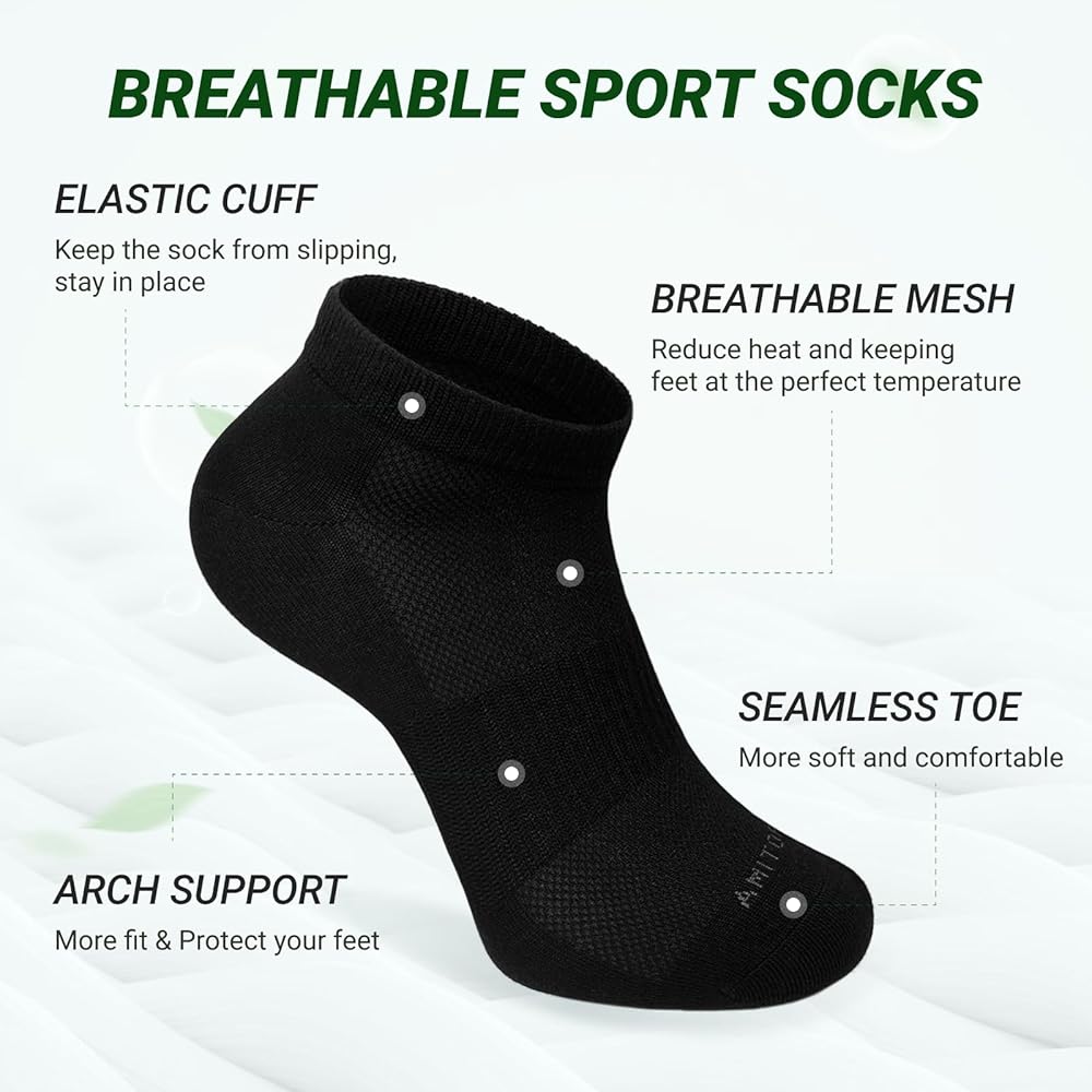 【جوارب الكاحل Viscose للرجال والنساء】 مصنوعة من مزيج من Viscose ، توفر هذه الجوارب الكاحل الرياضية المنخفضة القابلة للتنفس الراحة النهائية لقدميك. مصممة لكل من الرجال والنساء ، فهي مثالية للارتداء اليومي أو الجري أو المشي لمسافات طويلة أو أي نشاط آخر يتطلب الراحة والتنفس. تضمن المواد الرقيقة والخفيفة الوزن أن تبقى قدميك جافة ، طازجة ، وبرودة طوال اليوم ، مما يجعل هذه الجوارب القابلة للتنفس مثالية لارتداء كل موسم.