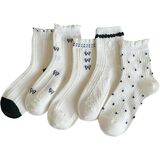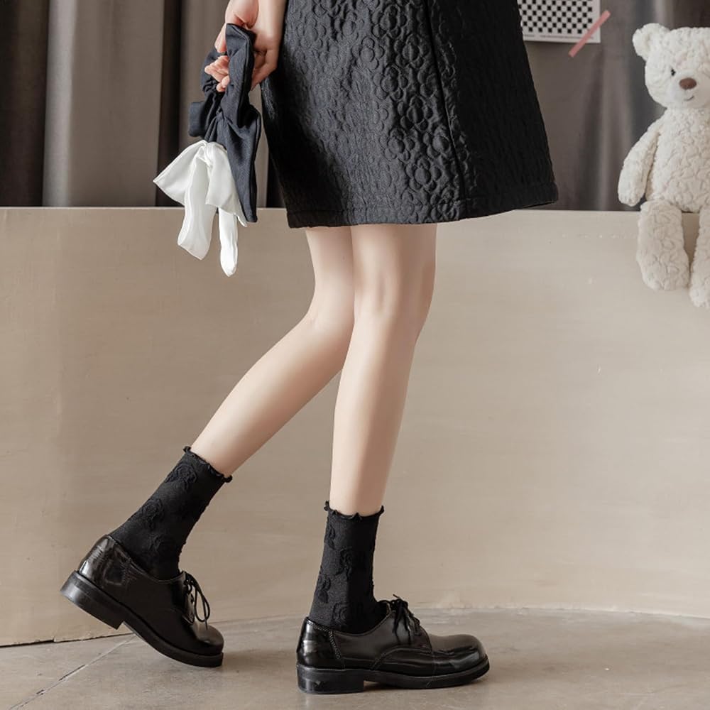 Women Cute Floral Socks Ruffle Frilly Dainty Flower Cotton Calf Dress Sock for Girls 5 Pairs