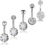 العبوة: 5 قطع من حلقات زر البطن باللون الفضي والأبيض مقاس 12 مم. يمكنك ارتدائها بخمسة أنماط مختلفة لكل يوم.