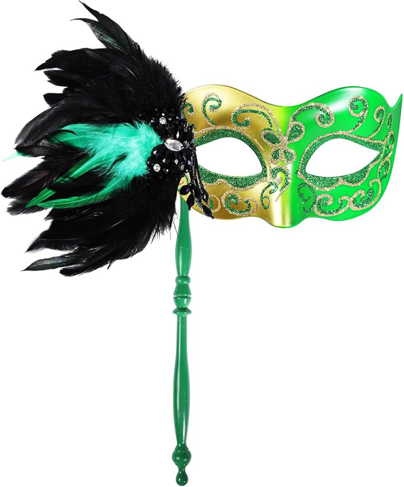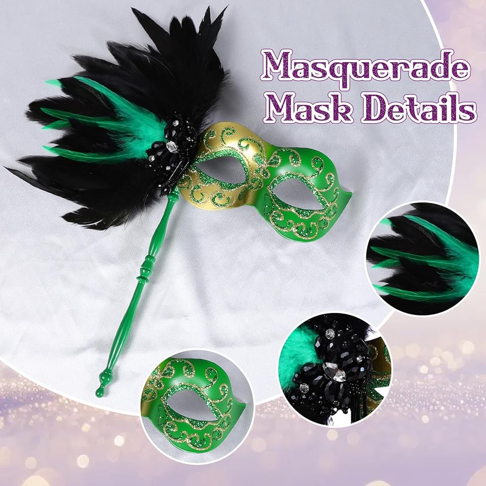 QUALITY MATERIAL: masquerade masks with stick are made of strong, durable and lightweight plastic. Decorated with sparkling rhinestones and feathers, stunning and eye-catching accessory. The light and nimble feathers will dance in the air with your steps, well perfect for almost of all your dress.