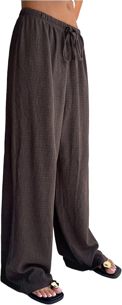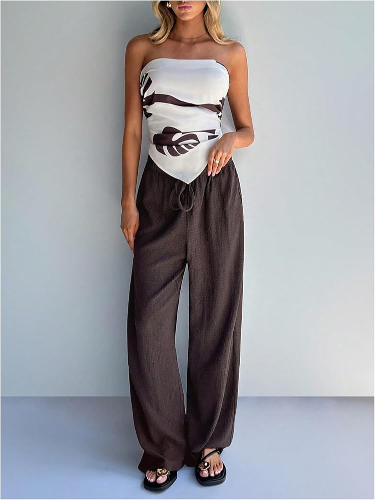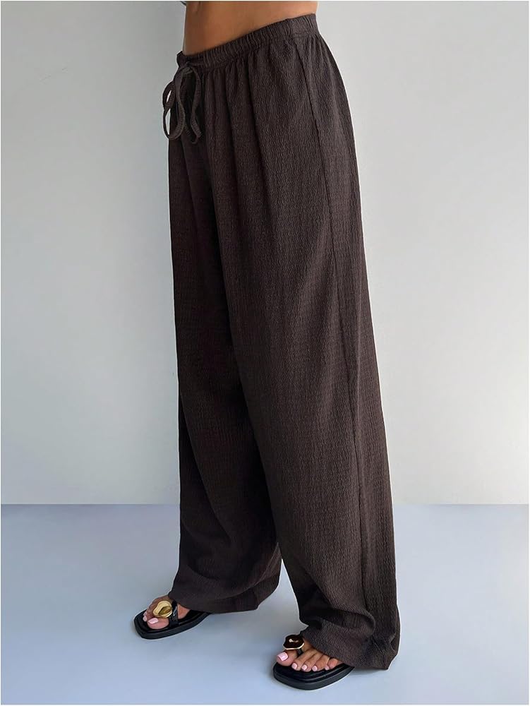 • Women's casual pants are characterized by their straight-leg design and an elastic waistband with a drawstring, providing both a relaxed fit and adjustable comfort
