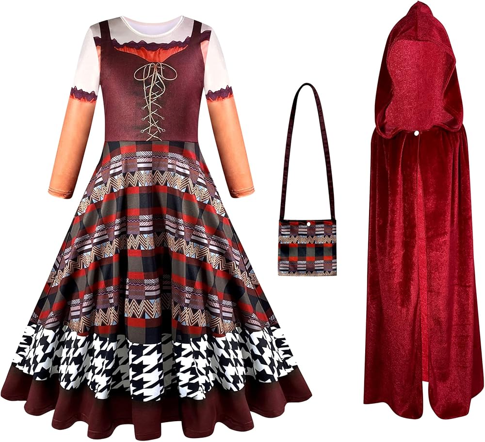 🧙♀️Package Includes - 1x One-Piece Sarah Sanderson Costume Dress and 1x Cloak and 1x Bag.