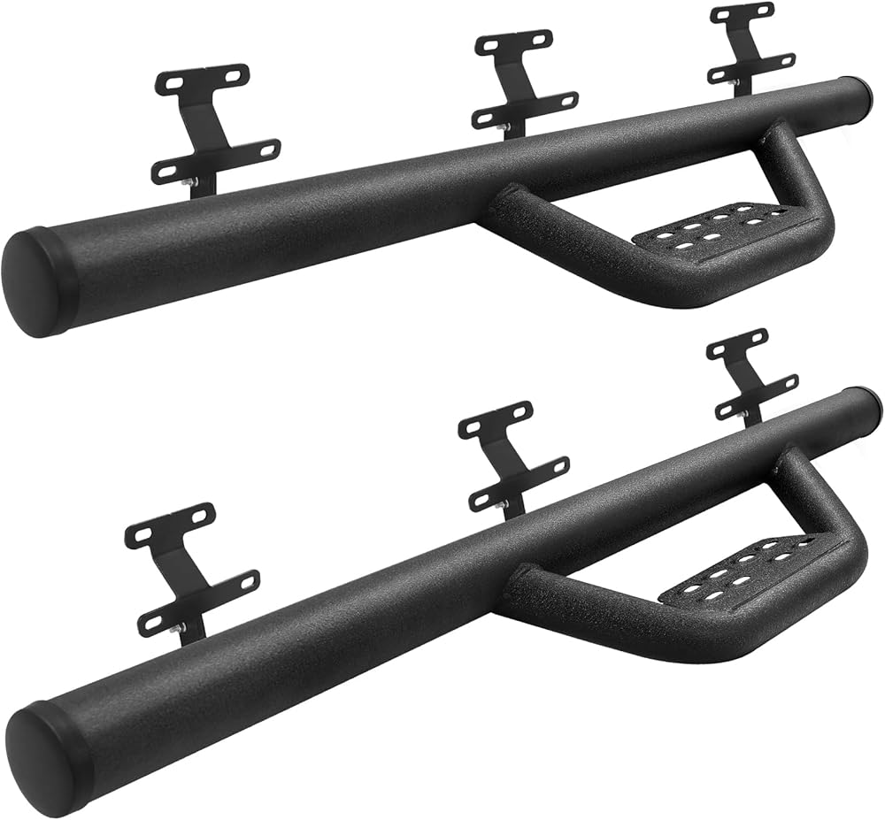 UNIQUE DESIGN: The side steps provide your truck with solid protection and a unique look. Our pedals matched the contours of the rocker panels and fenders. The upper rod is tucked close to the clamp rail, hiding it nicely.maximum load more than 450 pounds.
