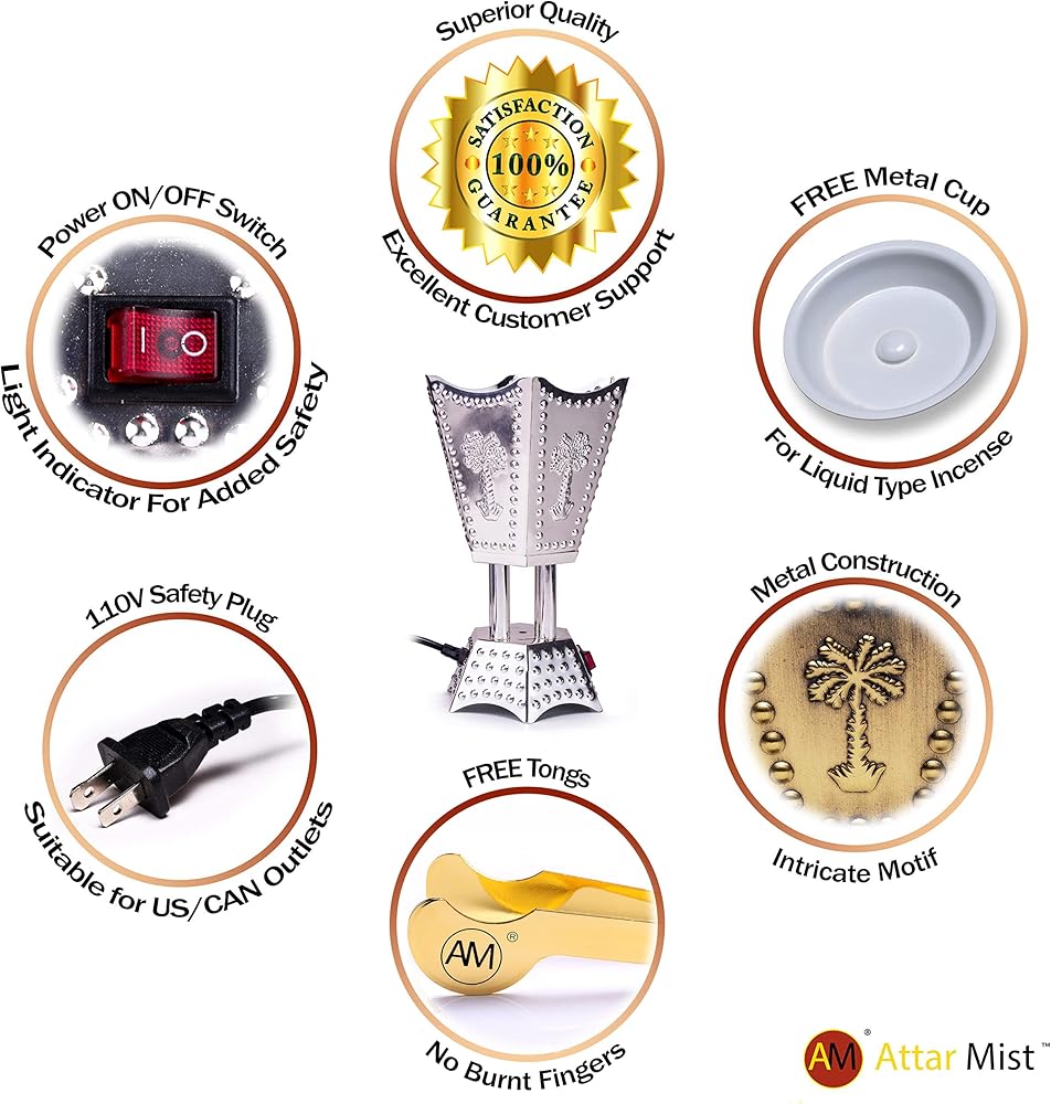 - ملقط متضمنة:- كل موقد يأتي بمجموعة من الملقط حتى لا تحرق أصابعك أثناء إضافة البخور إلى اللوحة الساخنة