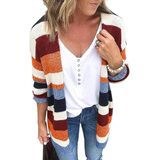- Fashion Women's Long Sleeve Sweater Striped Cardigan Cotton Long Coat Tops Loose Sweatshirt with Pocket plus size