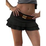 • Features: Drop waist, pleated, ruffle hem, tiered layer, solid color, short skirts for women