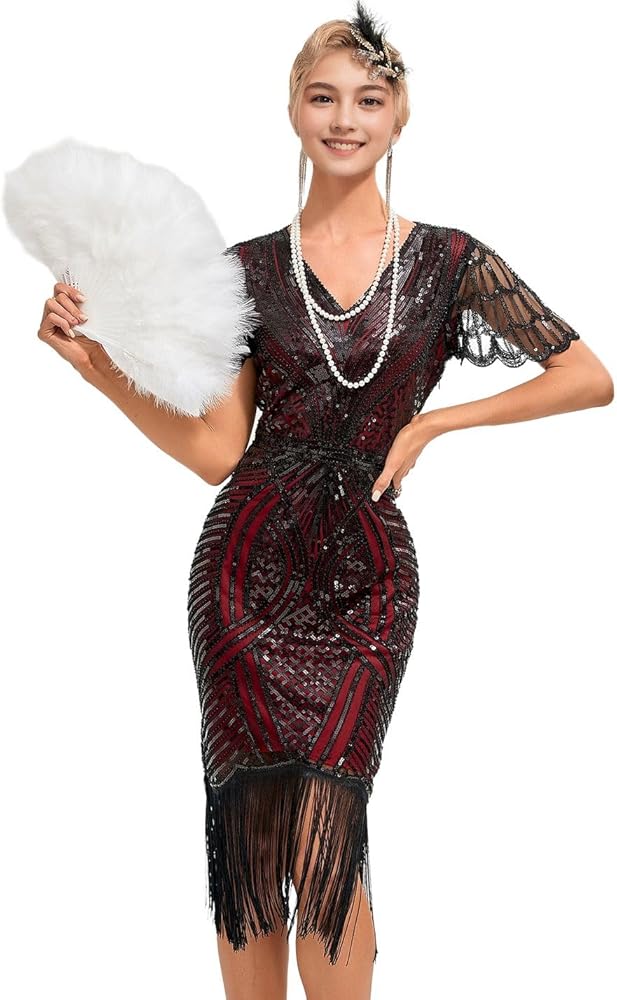 • فستان رائع للكوكتيل ، الحفلة الراقصة ، المساء ، الحدث ، عيد الميلاد ، الرقص ، لحفلة العشرينات من القرن العشرين ، حفلة غاتسبي العظيمة ، حفلة آرت ديكو وحفلة Flapper. يمكن أيضًا استخدامها كلباس لاتيني ، فستان التانغو ، فستان الإيقاع ورامبا.