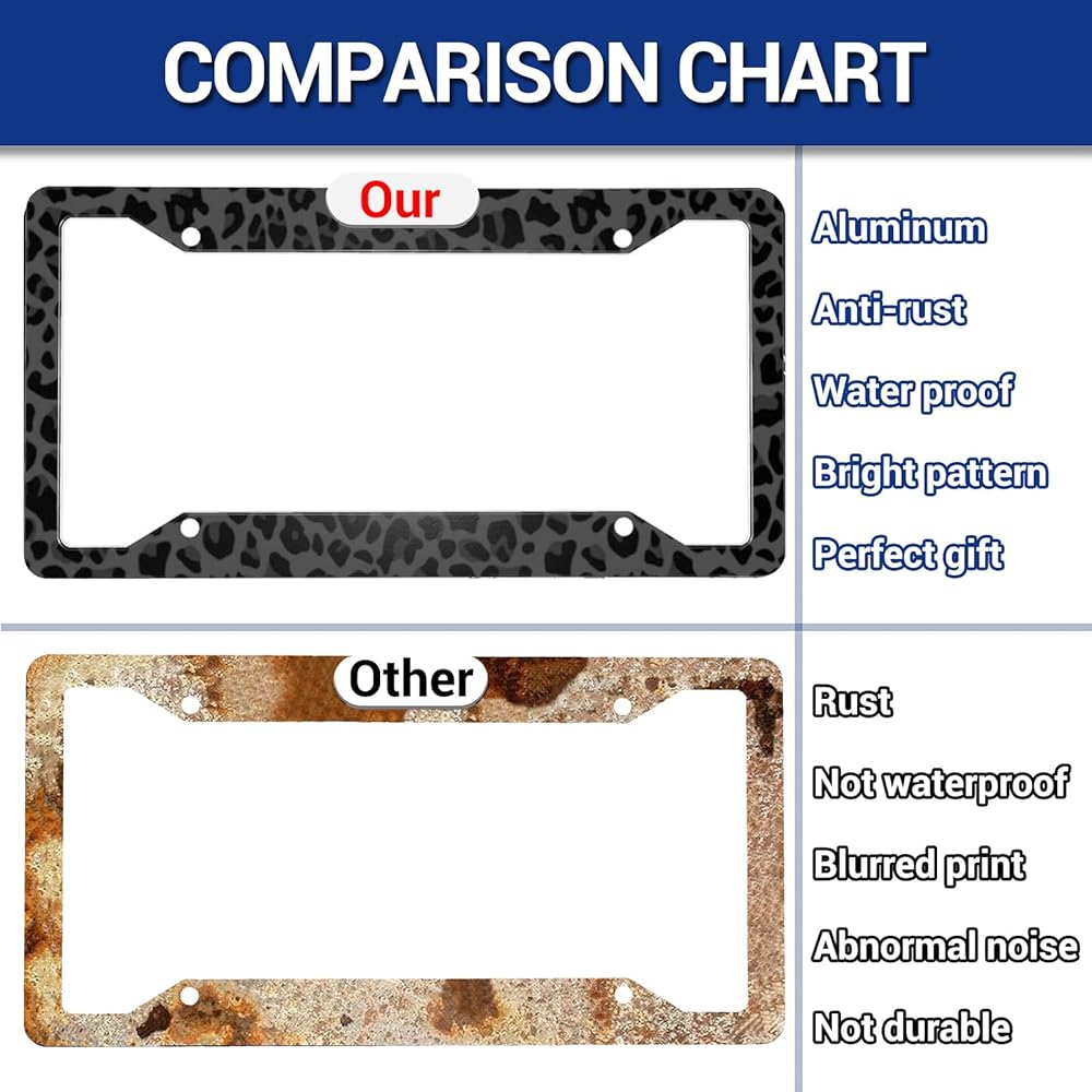 💎 مادة الألومنيوم: صفيحة ترخيصنا مصنوعة من مادة الألومنيوم متينة ، وليس البلاستيك الرخيص. خصائص إطار لوحة الترخيص هي خفيفة الوزن ، ومتانة جيدة ، ويمكن أن توفر حماية طويلة الأمد من التآكل ، الصدأ ، والشيخوخة ، من السهل التعامل مع جميع أنواع الطقس السيئ ، وسهلة الصيانة.