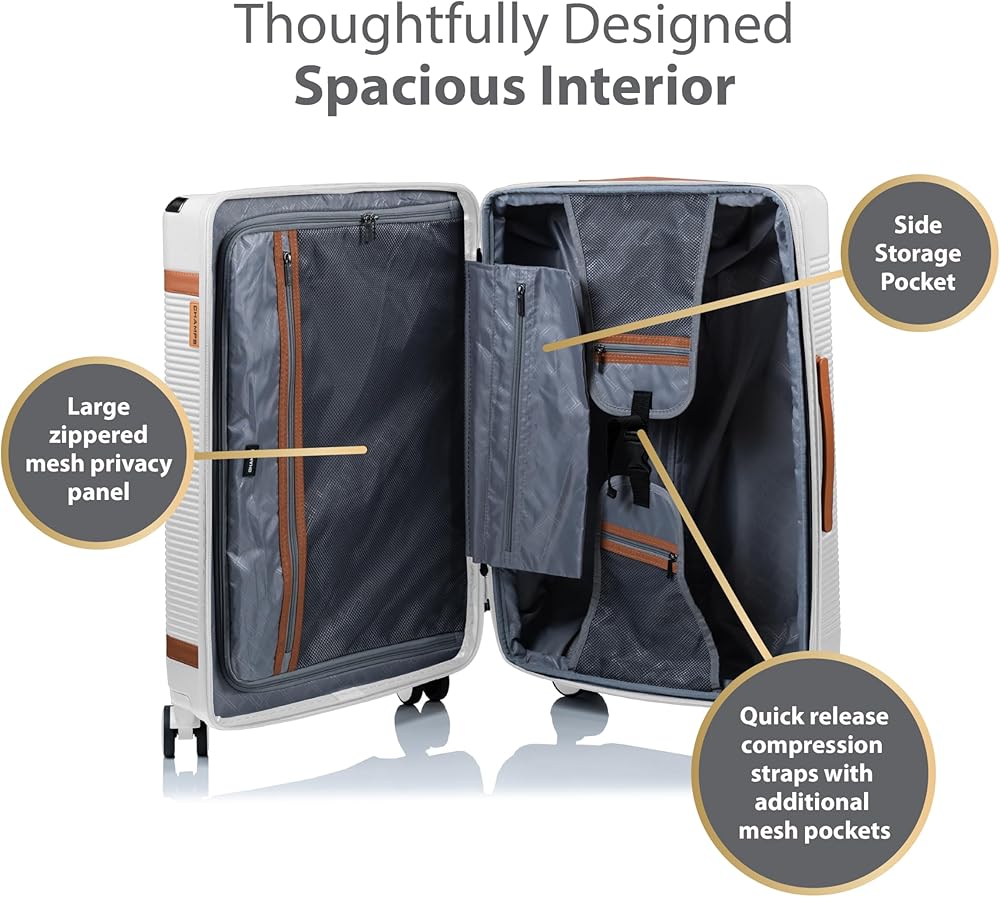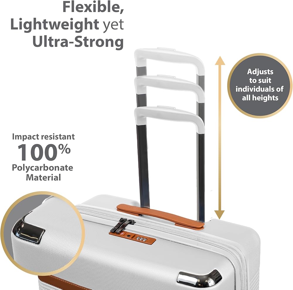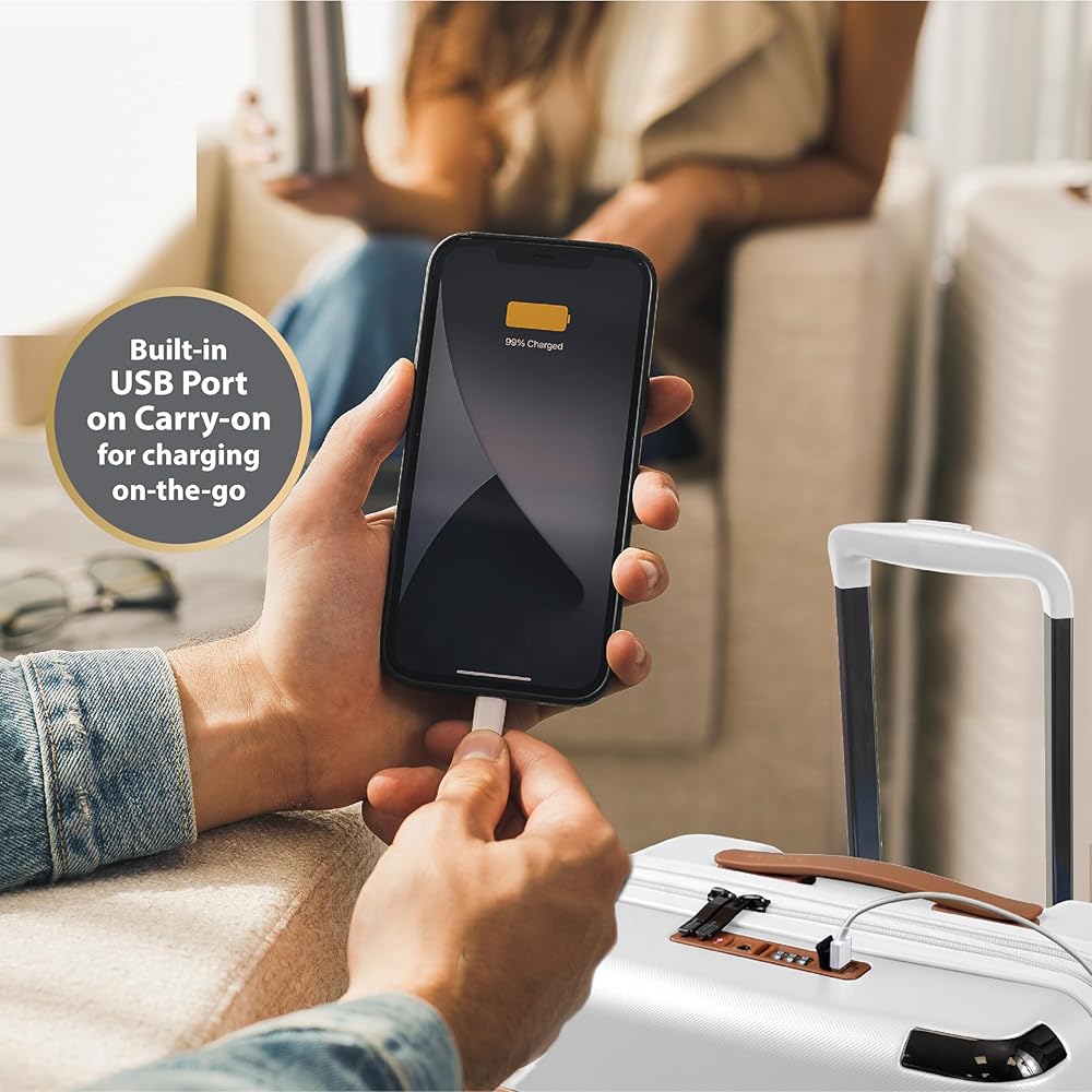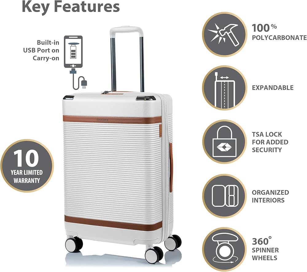 Presenting the Vintage III Collection, a timeless ensemble that combines sophistication with modern functionality. This 3-piece set offers all the premium features you could desire, including on-the-go charging, recessed TSA locks, and expansion on all sizes. Designed for individuals and families alike, this collection ensures versatility without compromising on storage, as each piece nestles neatly within the other, saving valuable space at home.Crafted with vintage-inspired aesthetics, the Vintage III Collection is as durable as it is stylish. Constructed from premium lightweight polycarbonate material, it ensures longevity while exuding elegance. Smooth spinner wheels guarantee seamless movement on any surface, complemented by recessed TSA-approved locks for enhanced security. Additionally, front corner protectors add an extra layer of protection to your luggage. The Carry-on boasts a built-in USB port for convenient charging on-the-go, along with a removable toiletry bag and multiple pockets for optimal organization. Whether embarking on all-inclusive trips, weekend getaways, or extended vacations, the Medium and Large check-in bags cater to your needs with their versatile sizes. Together, these pieces represent unbeatable value, making the Vintage III Collection the perfect choice for discerning travelers seeking both style and functionality.Unparalleled designA perfect blend of vintage details with a modern twist. A timeless classic.Built to lastLight-weight, water-resistant, durable polycarbonate hard-shell.Effortless movementDurable 360° dual spinner wheels for a smooth ride on any surface.Light-weight trolleyAdjustable height, aluminum telescopic trolley system.Built-in TSA lockRecessed TSA approved locks for added safety.Charging on-the-goCarry-on with built-in USB port allows you to charge your devices anywhere you go. (cable included, power bank not included).Pack moreAll 3 sizes (Carry-on, Medium check-in bag, Large check-in bag) come with a 2" expansion feature for added packing capacity.Thoughtfully designed interior- 50/50 packing layout for easy organization.- Interior compression straps allow you to pack more.- Zippered-pockets on compression straps to organize smaller items.- Separate large zippered-compartment to keep dirty laundry, shoes or any other items you would like to keep concealed.- Carry-on with removeable toiletry bag for your daily essentials.- Carry-on with built-in power bank pocket (cable included, power bank not
