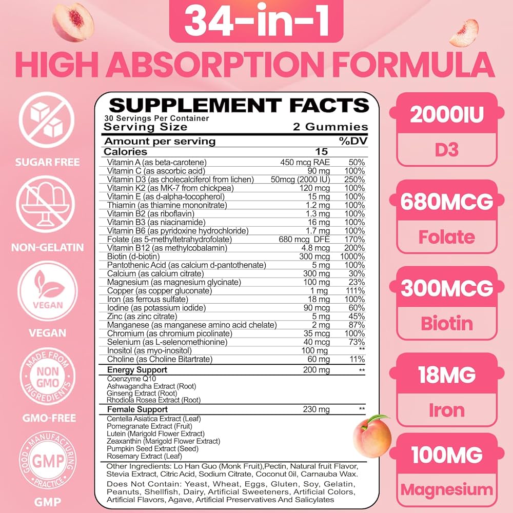 الخدمة الممتازة: تتميز Gummies بنكهة الخوخ اللذيذة وهم يفوق المعدّل وراثيًا ، نباتي ، خالي من الغلوتين ، خالي من الألبان ، وخالي من السكر ، مصنوعًا من مكونات متميزة مثل Luo Han Guo (فاكهة الراهب) ، و Carnaba ، و Carnaba ، و Carnaba ، و Carnaba ، و Carnaut ، الصويا ، الجيلاتين ، الفول السوداني ، المحار ، الألبان ، المحليات الاصطناعية ، الألوان الاصطناعية ، النكهات الاصطناعية ، الصبار ، المواد الحافظة الاصطناعية ، والساليسيلات.