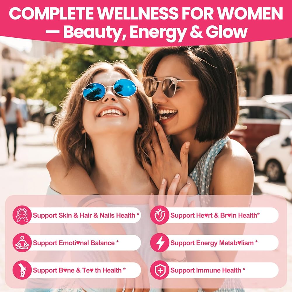 مزيج مجمع ذو شعر بشرة: يجمع هذا الملحق المتقدم بين الفيتامينات الأساسية (A ، C ، E ، B6 ، النياسين) ، البيوتين ، والزنك مع مزيج قائم على النبات من Centella Asiatica ، Pomegranate ، Lutein ، و zeaxanthin ، بذور اليقطين ، وتصليح الروزماري.